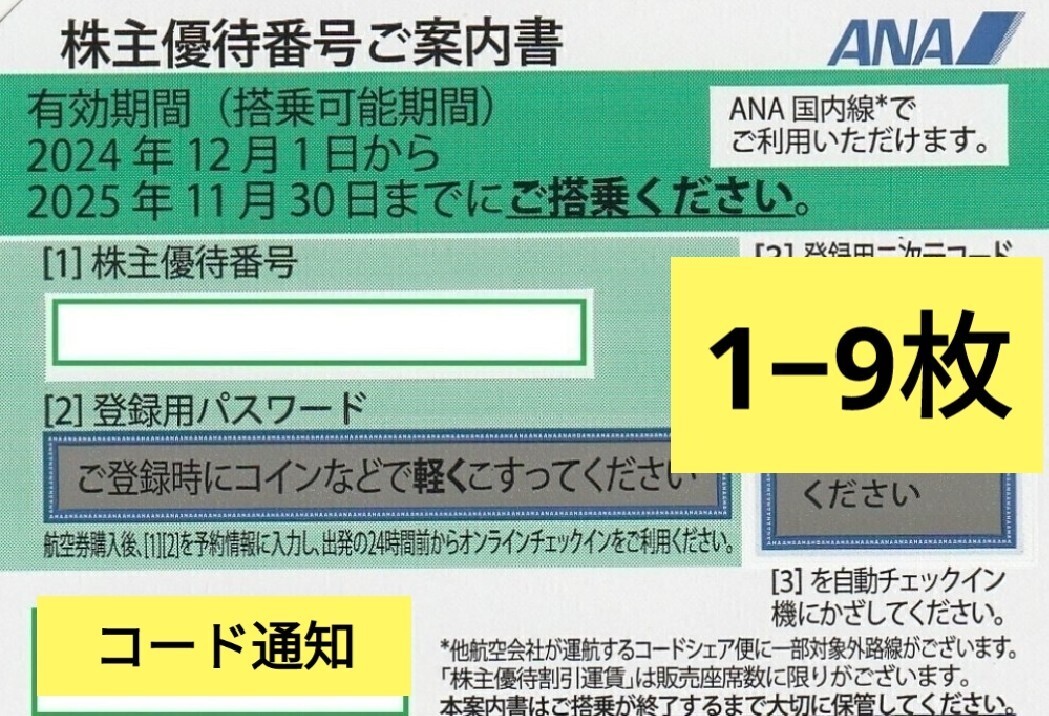 ★ANA株主優待券です。1枚で普通運賃の50%引きになります