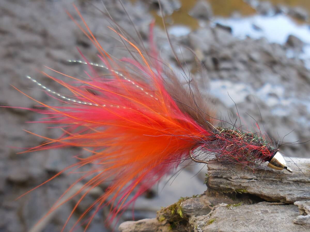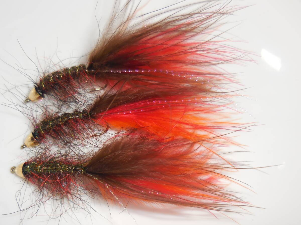 現在多くの河川、湖で繁殖しているウチダザリガニ。多くの大型トラウトのエサとなっていると思われます。非常に大型に成長しますが、実際に捕食されるサイズはこのフライ程度の大きさが多いでしょう。ウエイト入りで、主にスイングで狙いますがリトリーブも効果的です。