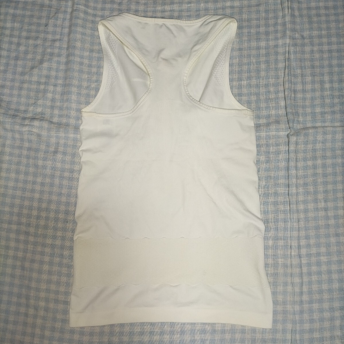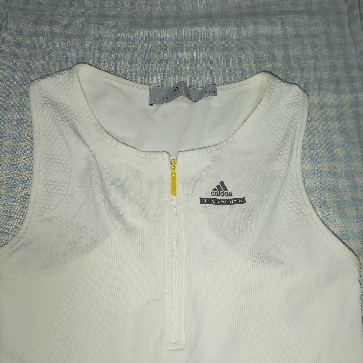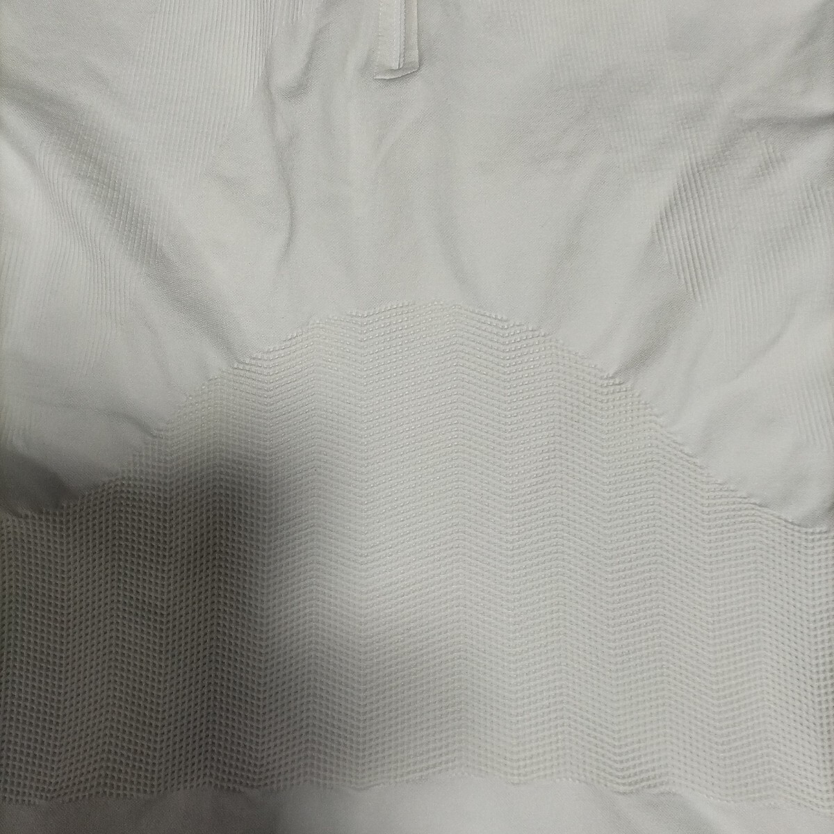 色はオフホワイト ジップの金具は黄色 素材は画像をご覧ください。サイズOT 平置き実寸:肩幅29cm胸幅36cm着丈61cm
