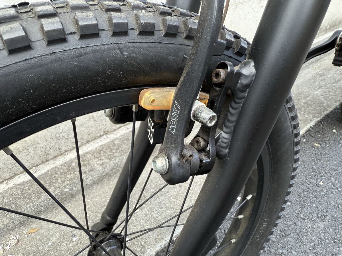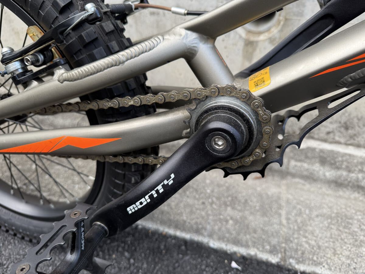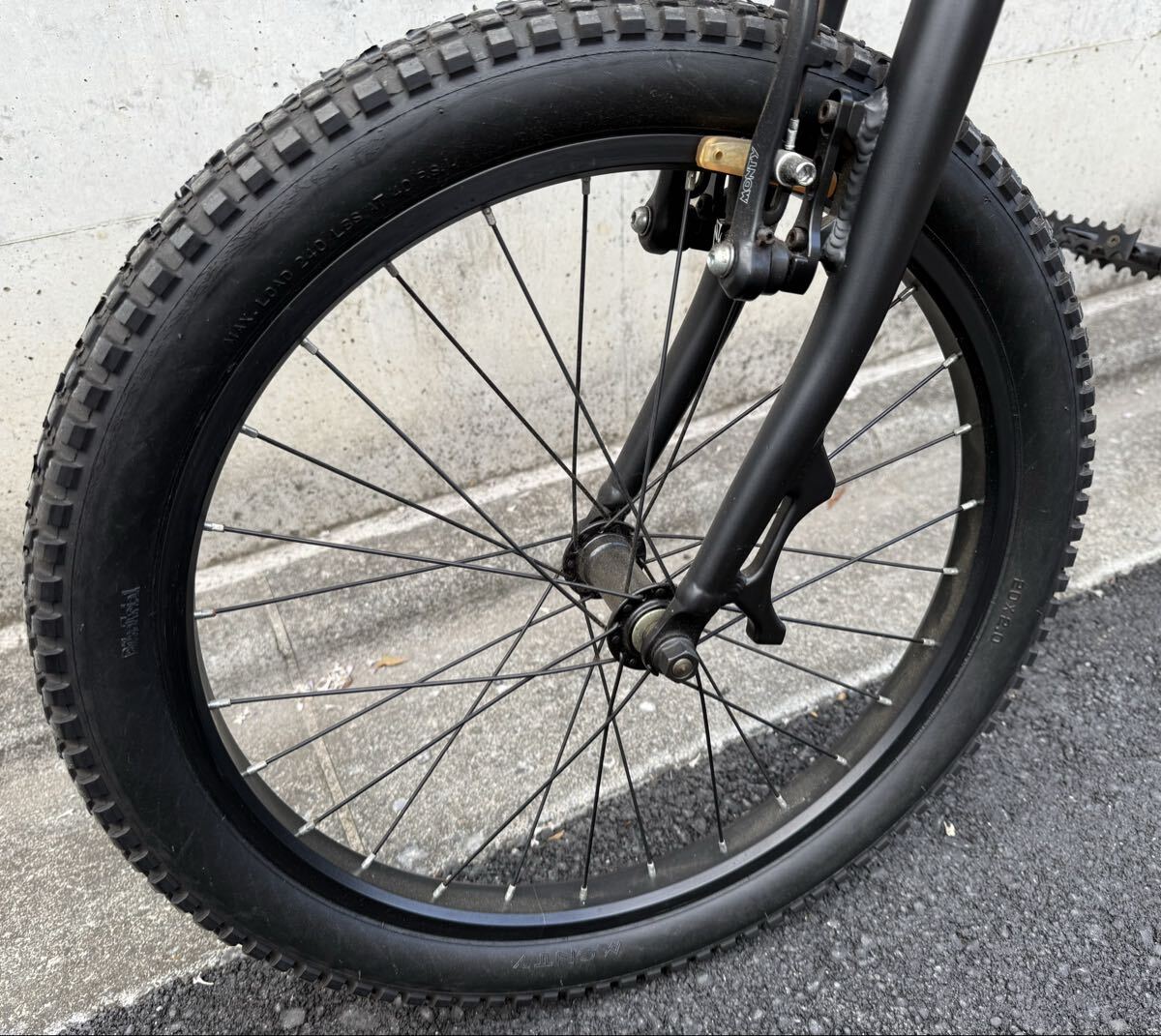 使用状況:2018年にトライアル自転車専門店で新車で購入して基礎的な練習とダニエルが出来るまでになりましたが、それ以上の上達に壁を感じ半年くらいでオブジェと化しました。保管はガレージ内ですが湿気などで若干のサビは出ています。また練習中による転倒でグリップとペダル、その他、傷がございます。ブレーキシューは新車の時にタイガオVブレーキシューに変更しましたがヒビ割れが出ております。ノーマルが未使用で残っておりますのでこちらもお付けします。ですが年数が経っているため性能は保証できません。タイヤの方ですが、こちらはヒビ割れが出ているので交換をお勧めいたします。