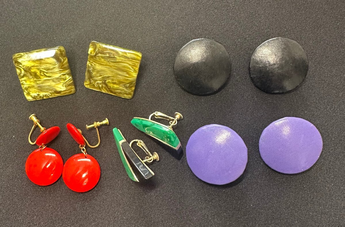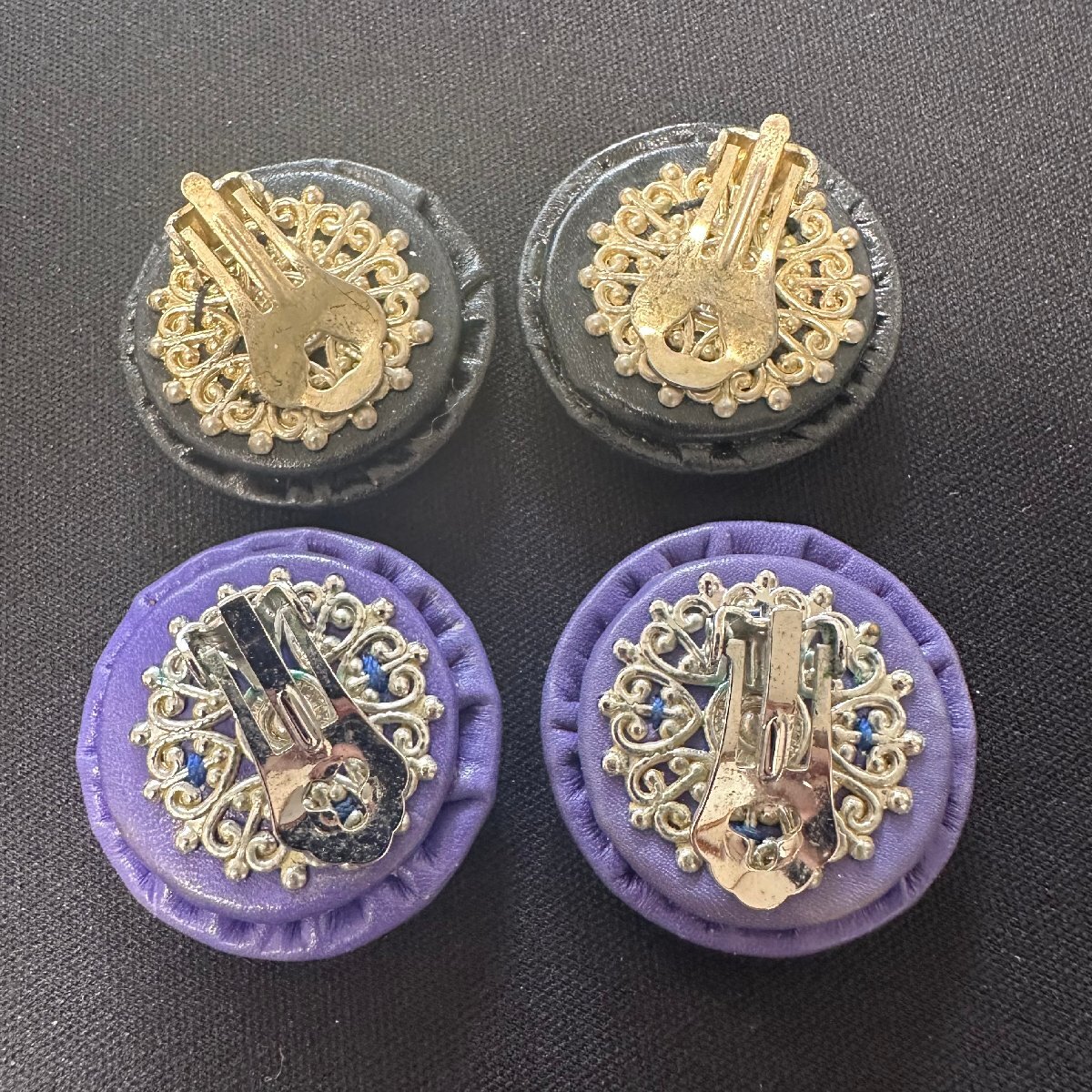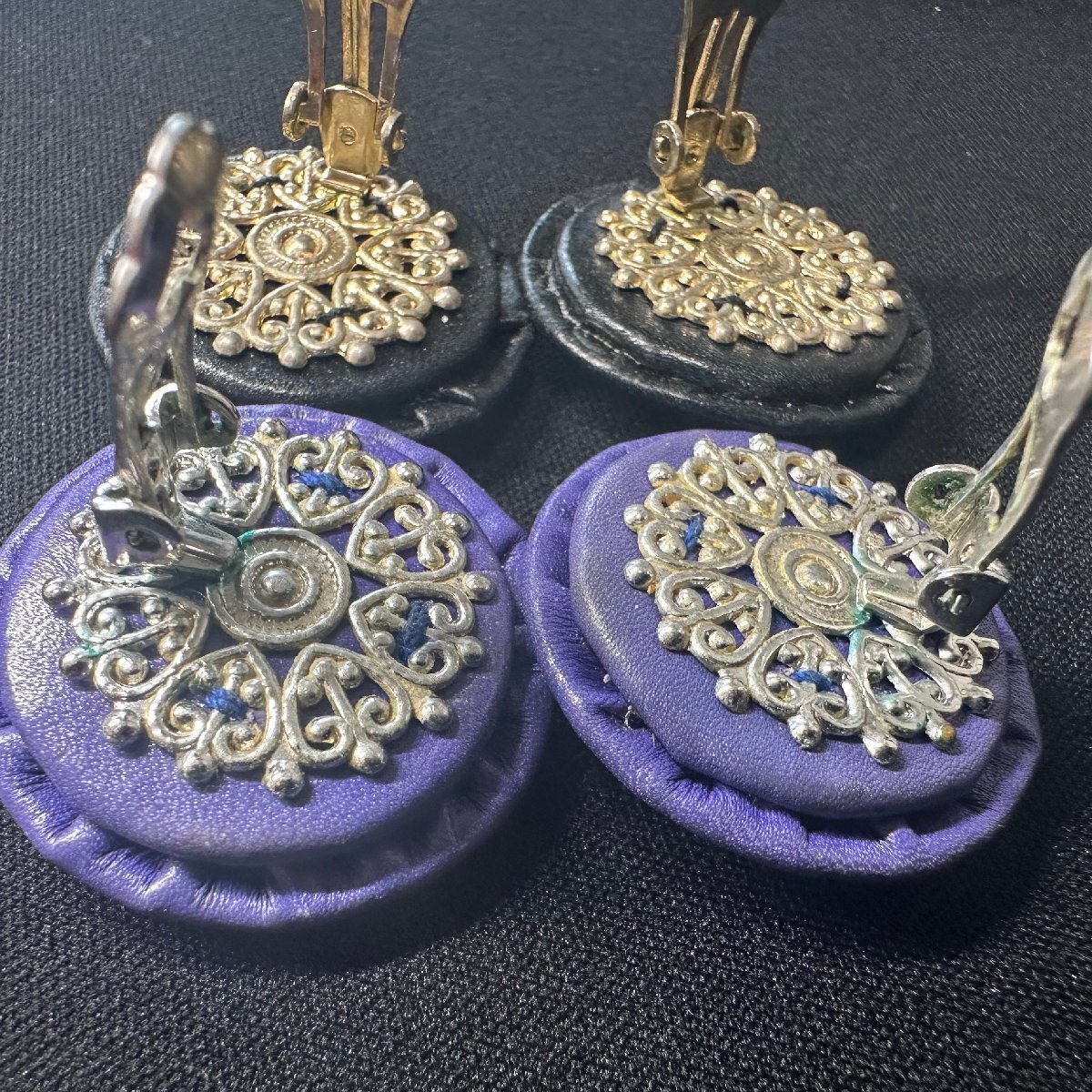 q2937 ヴィンテージ レトロ 革 イヤリング アクセサリー レディース 黒/赤/緑/紫 まとめ売り