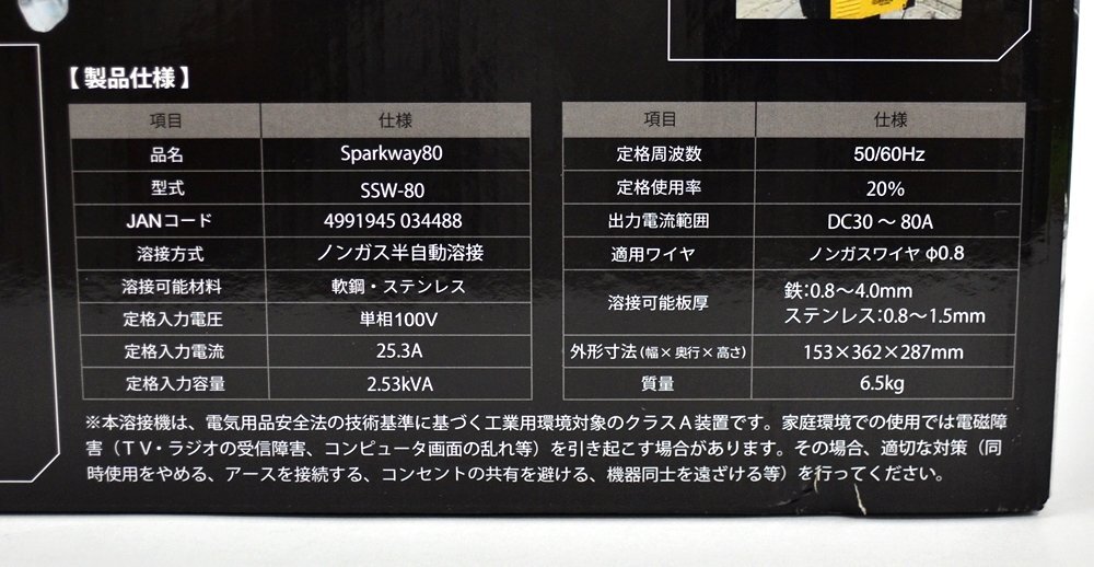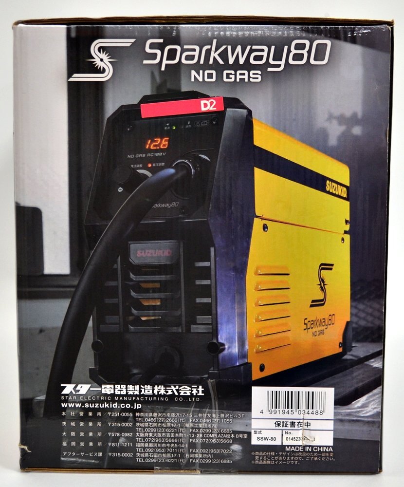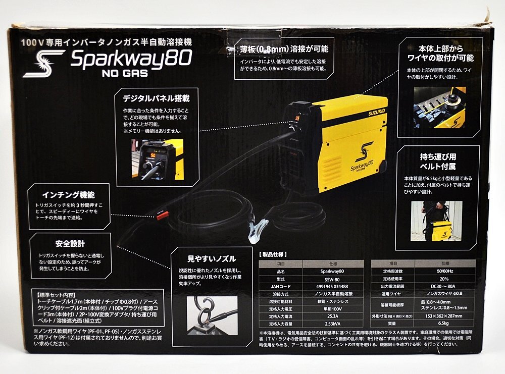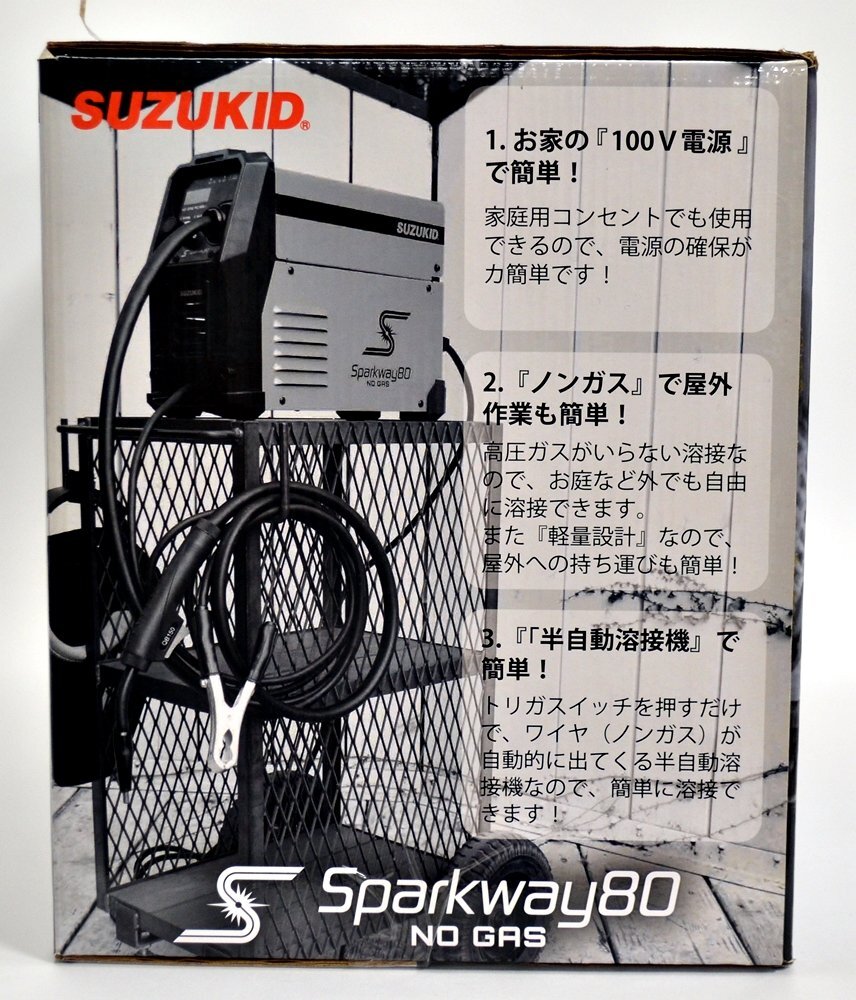 新品 SUZUKID 100V専用 インバータノンガス半自動溶接機 SSW-80 ノンガス 高圧ガス不要 材質:鉄/ステンレス 定格周波数:50/60Hz スズキッド