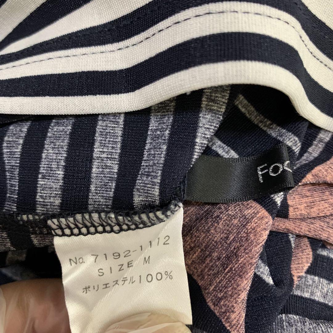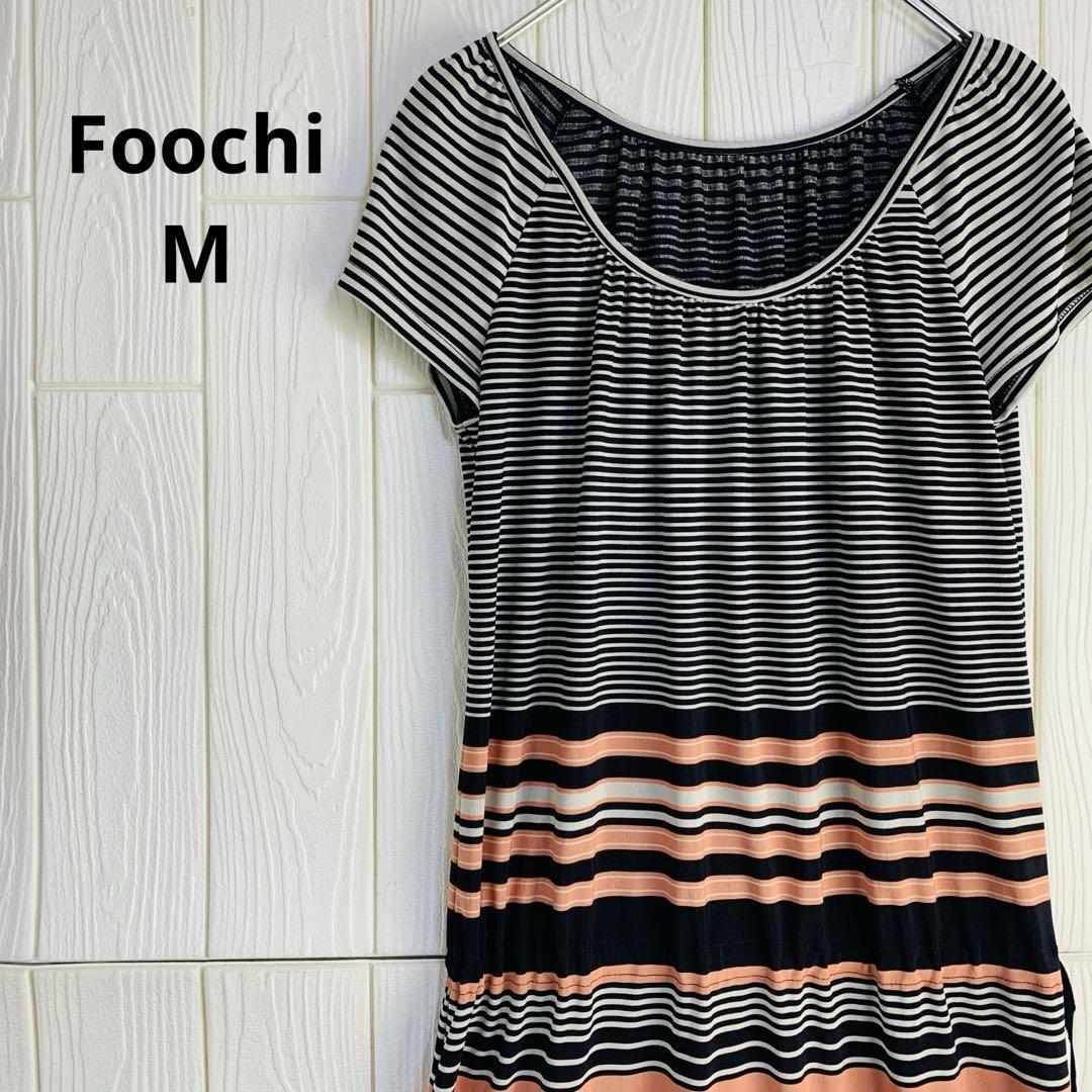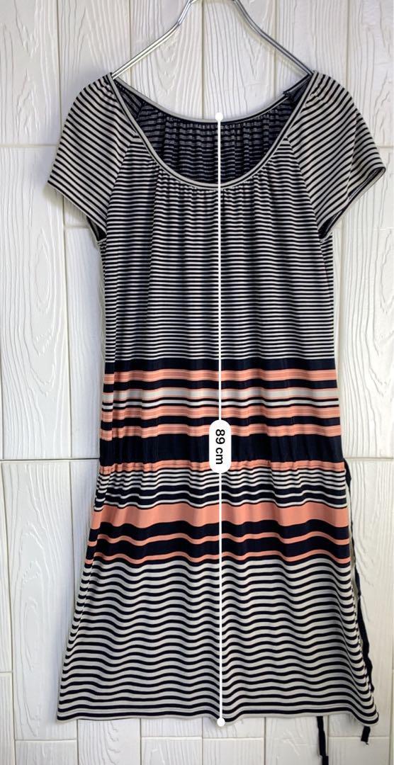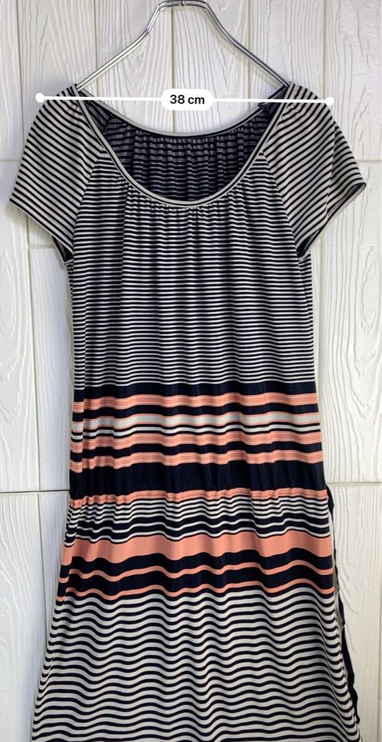 ストライプデザインの半袖チュニック、Mサイズ、着丈89cm、肩幅38cm。