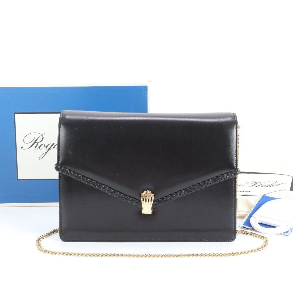 ■極美品■Roger Vivier ロジェ ヴィヴィエ チェーン レザー ショルダーバッグ 肩掛け ハンド ブラック 黒 レディース VMM CT29-8