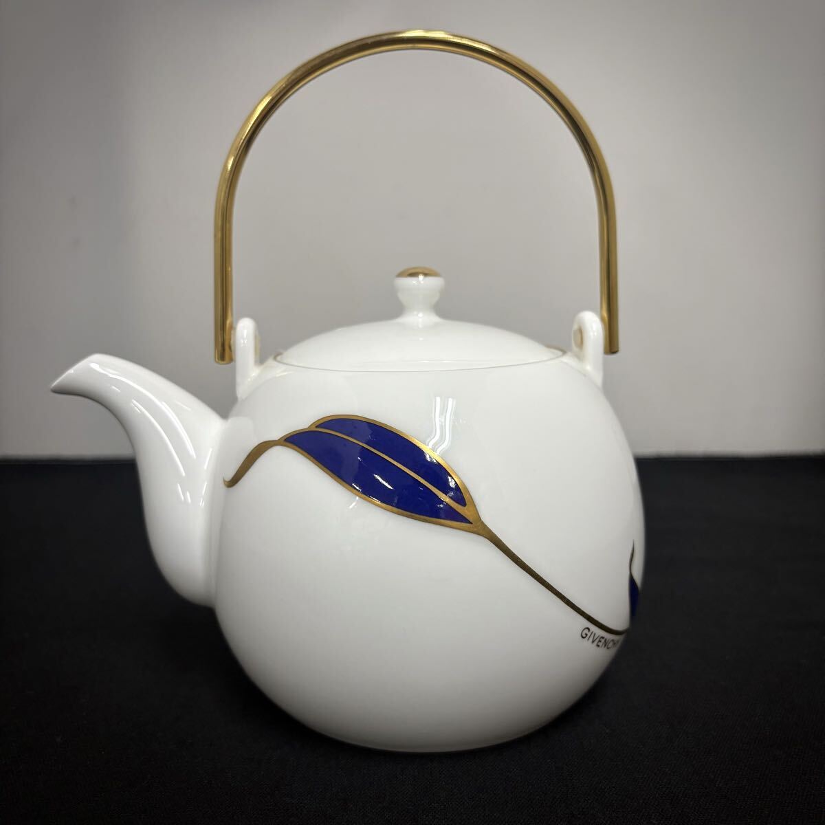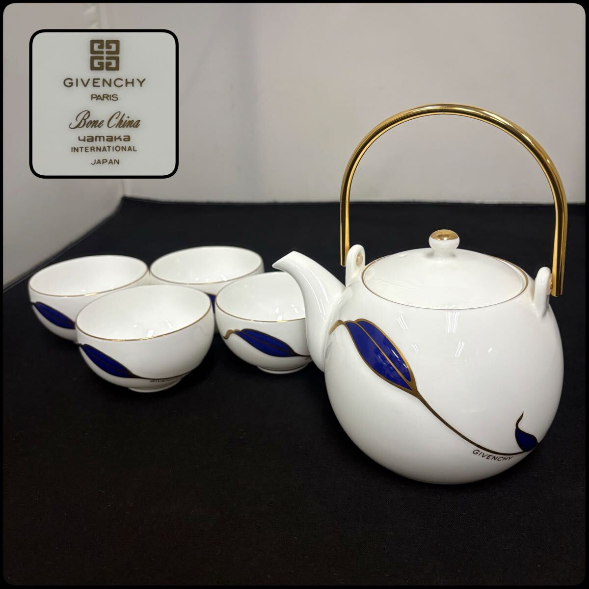 GIVENCHY ジバンシー 金彩 茶器セット 急須 玉湯呑4客 ゴールド提手 煎茶器 和食器 美品 (10147E