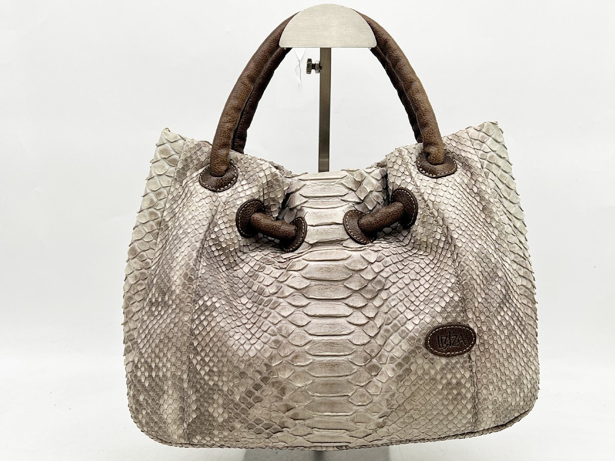 □IBIZA イビザ ハンドバッグ 蛇革風 ダイヤモンドパイソン? レザー風 レディース 手提げ 日本製 ブランドバッグ 古着 中古 | |||