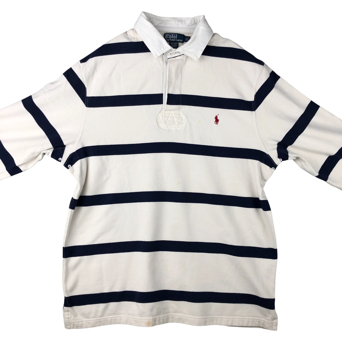 商品名: 古着 ラルフローレン Ralph Lauren POLO by Ralph Lauren ボーダー柄 長袖 ラガーシャツ メンズXL相当 /eaa589561 【中古】 【251016】 【NH-2508】 ブランド: Ralph Lauren ラルフローレン 特徴: レギュラーカラー / 長袖 モデル/形状: POLO by Ralph Lauren / 長袖 ラガーシャツ 素材: コットン:87% / アクリル:13% 色: ホワイト系 白色 / ネイビー系 紺色 柄: ボーダー柄 / ワンポイント 生産国: スリランカ製 年代: - カテゴリ: メンズ 長袖シャツ ラガーシャツ 商品番号: eaa589561 | |