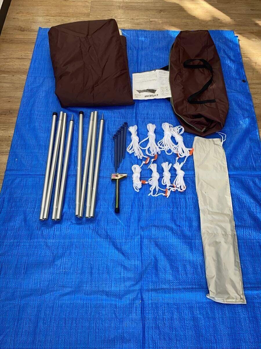 | 全体的に目立つ土汚れ及び 裏面の一部にシミ汚れがございます。 付属品:本体 ポール×2 プラペグ×4 ロープ×8 ハンマー ケース キャリーバッグ 取扱説明書(縫付) |