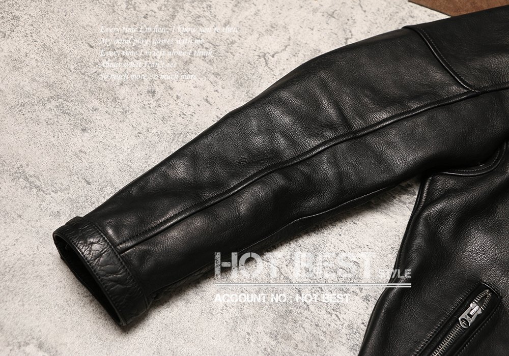 1.2mm厚の上質なイタリアンカウハイド(牛革)を使用し、無駄を削ぎ落としたシンプルな美しさを追求した、スタンダードスタイルのシングルライダースジャケット。