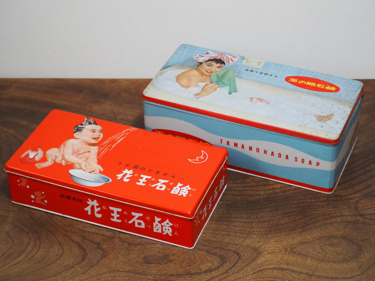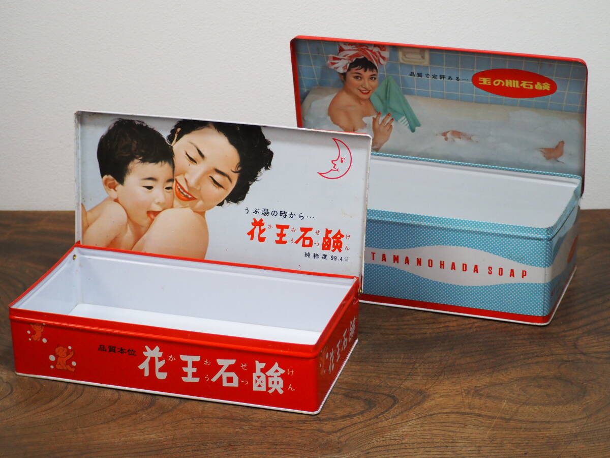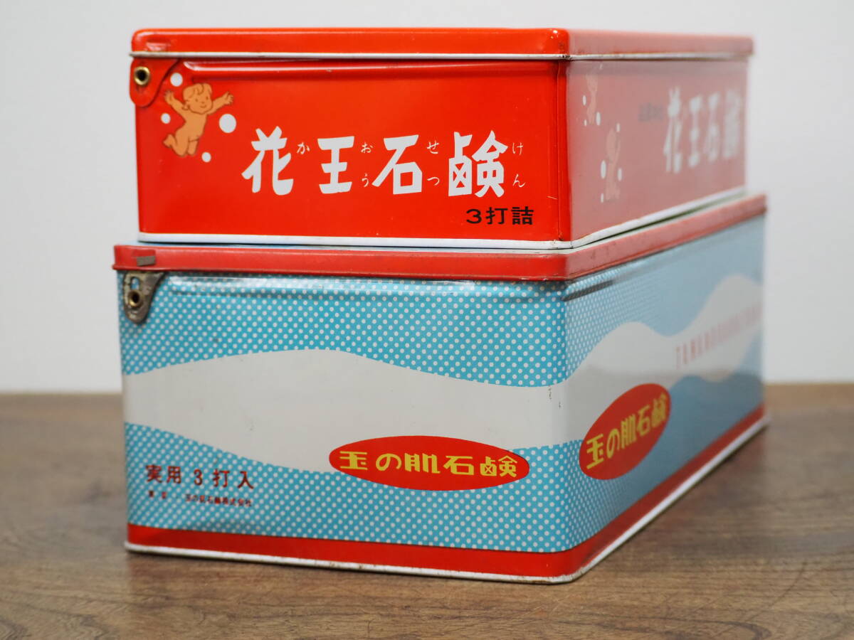 昭和レトロ 花王石鹸 3打詰/玉の肌石鹸 実用3打入 ブリキ缶 2点 収納 石鹸缶 レトロ缶 当時物 非売品 ヴィンテージ