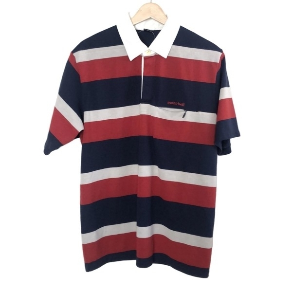 モンベル mont-bell 半袖ポロシャツ サイズL - ネイビー×レッド×マルチ メンズ ボーダー トップス