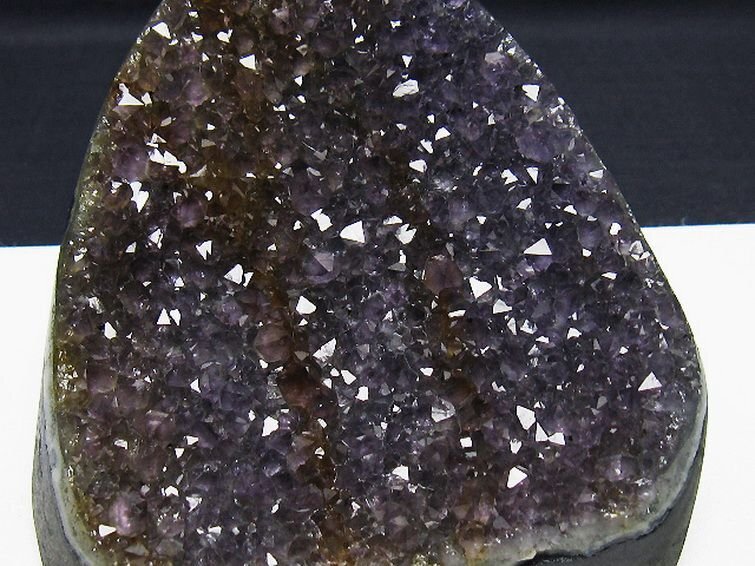 ■商品名: ウルグアイ産アメジストクラスター ■商品ID: T95-11393 ■商品重量:約 633g ■商品サイズ: 高約:80mm 横約:93mm 厚約:93mm 【アメジストクォーツ(紫水晶)】 アメジストは鉄分によって紫色に発色した水晶の一種です。 名称はギリシャ語で酒の意味のmethyと否定辞のa、つまり「酒に酔わない」「この石でできた盃で酒を飲めば悪酔いしない」に由来するとされています。 「酒に酔わない」と言われる通り、アメジストは体調面への作用が大きく、血液を浄化して解毒、解熱作用を高め皮膚病の治療や不眠を解消するのにも用いられたと言われています。 アメジストは真実の愛を導く愛の守護石とも呼ばれ恋愛運UPの石としても広く知られています。 理想的な出会いをもたらす効果や持ち主に美や調和を与え、セクシーな魅力を引き出すとのことですので恋愛成就のお守りとしても最適といえるでしょう。 また、くよくよしたり傷ついたりしている時には癒し、目前の困難を乗り越えていけるように精神を強くするヒーリング効果も期待できます。 不眠にも効果があるとされていますので、ストレスを抱えている人にもおすすめの石です。 ⇒ アメジストをもっと詳しく ◆ワンポイント情報 アメジストは産地によって結晶や色味の傾向が変わります。 例えばブラジル産は結晶が大きめだが色味は少し薄め、ウルグアイ産は結晶は小さく細かいが色味は濃紫の傾向、メキシコ産は細長い結晶でライラックの様な明るく透明感のある紫など特徴が異なります。 産地による好みが人によって分かれるのもアメジストならではと言えるでしょう。 |