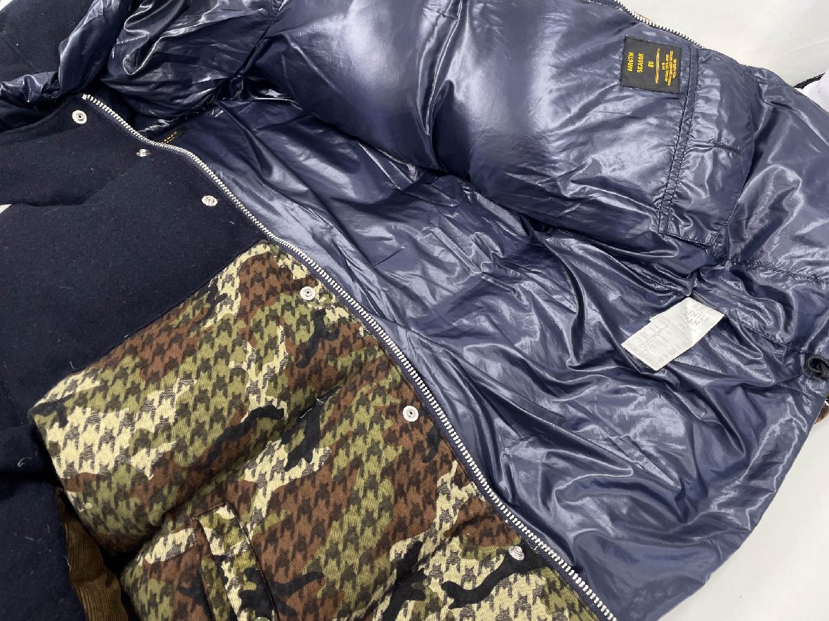美品【ミスタージェントルマン】MG14F-CO13 カモフラ×コーデュロイ切替 フード付ダウンジャケット (メンズ) M ネイビー系 ◇17MB5000◇