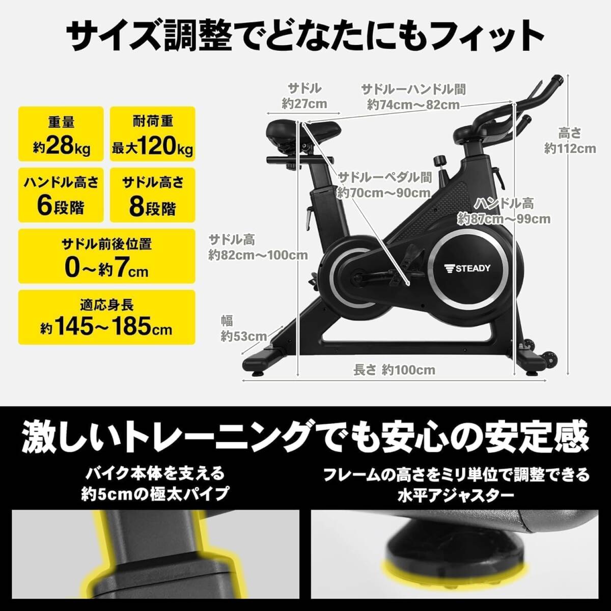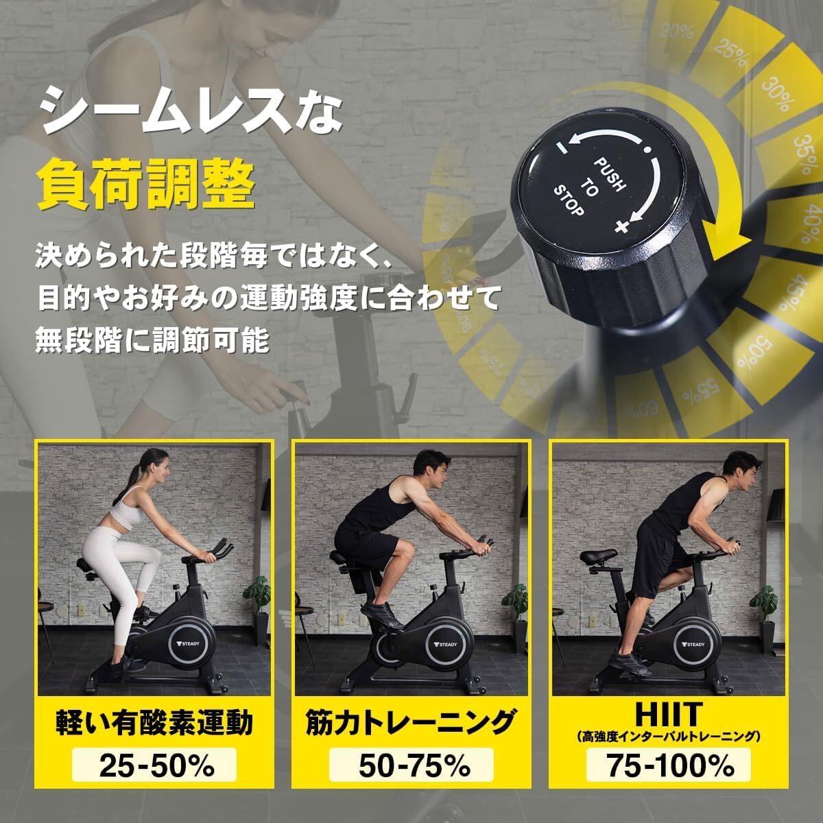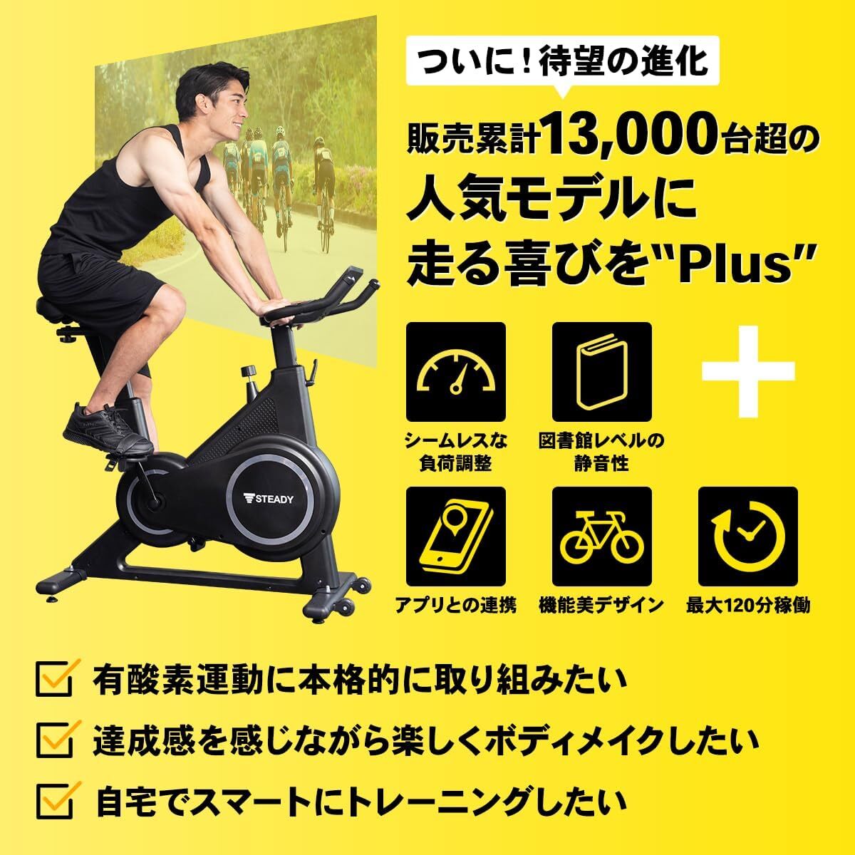 ホワイト色 STEADY スピンバイク Plus Zwift/アプリ連動/静音/組立簡単 エアロバイク フィットネスバイク 家庭用