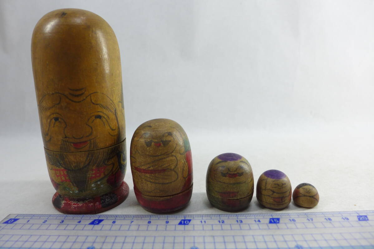 入れ子 こけし 2個 | 長期保管品 在銘 七福神 郷土玩具木地玩具 マトリョーシカ 小山 栄一?