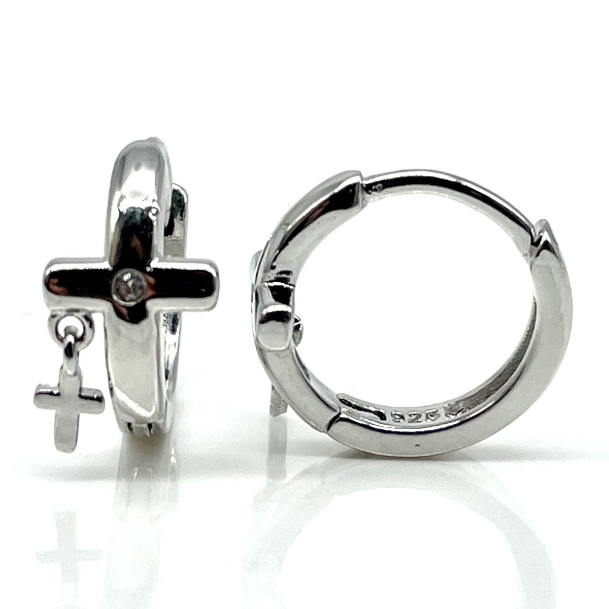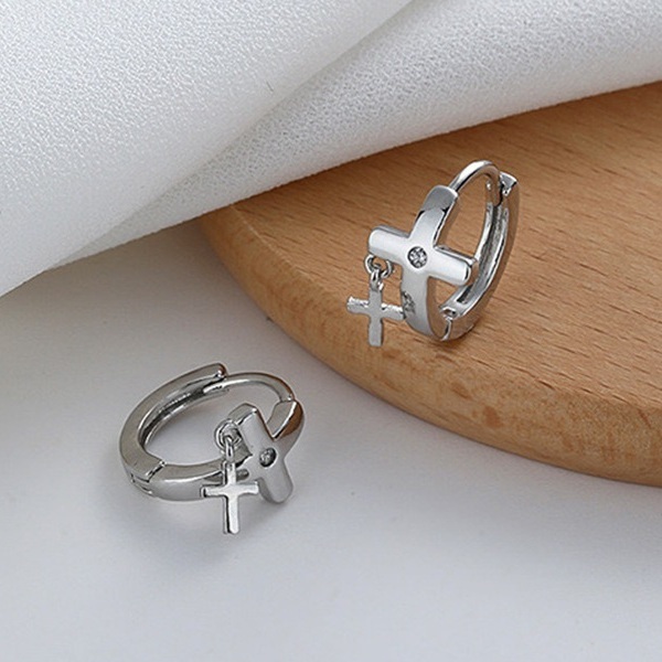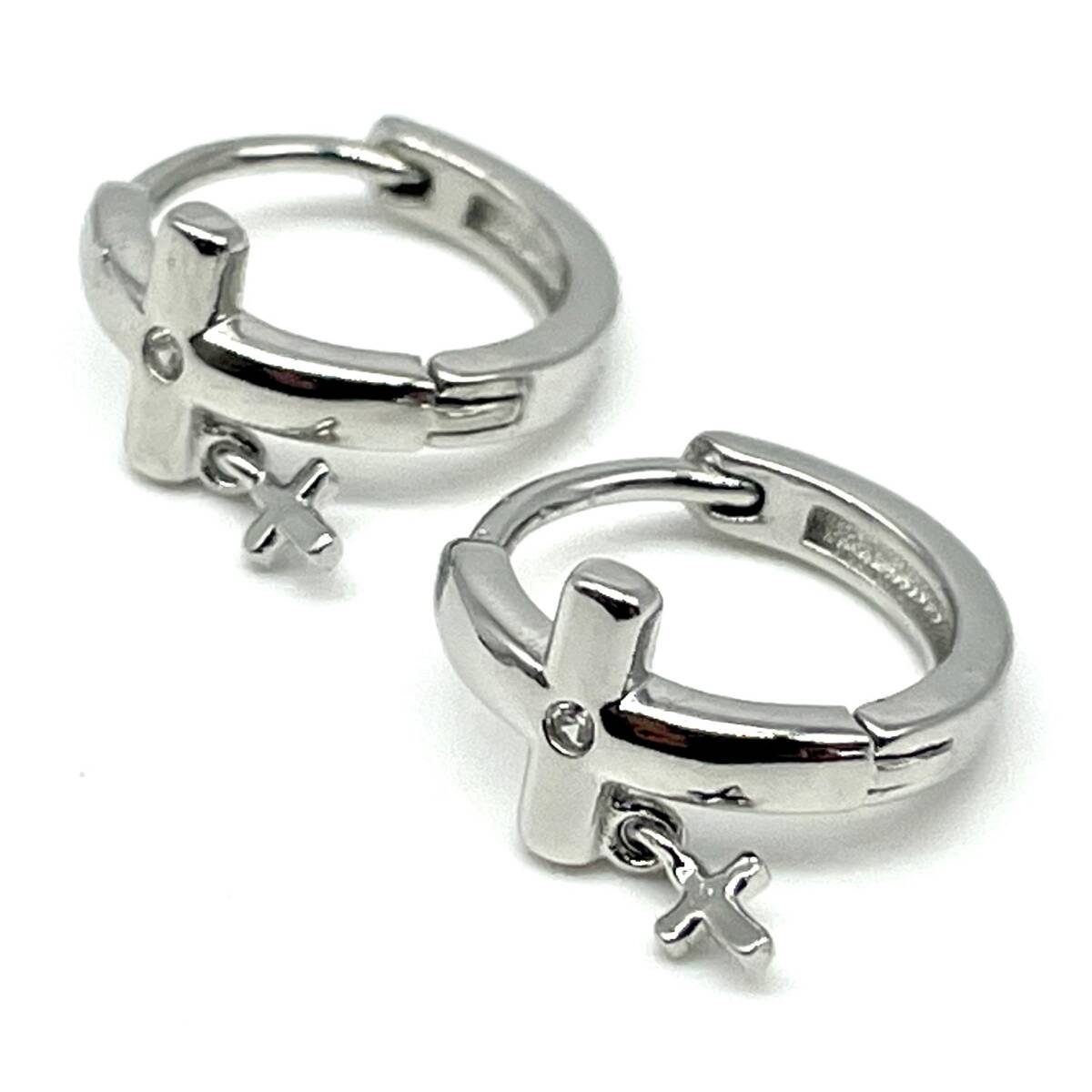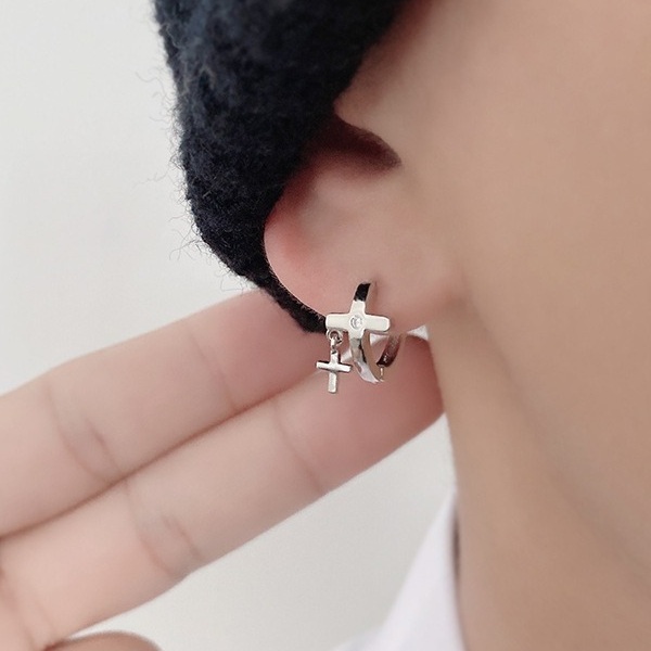 クロスをモチーフにしたデザインで小振りのチャームが動きのあるフープピアス。