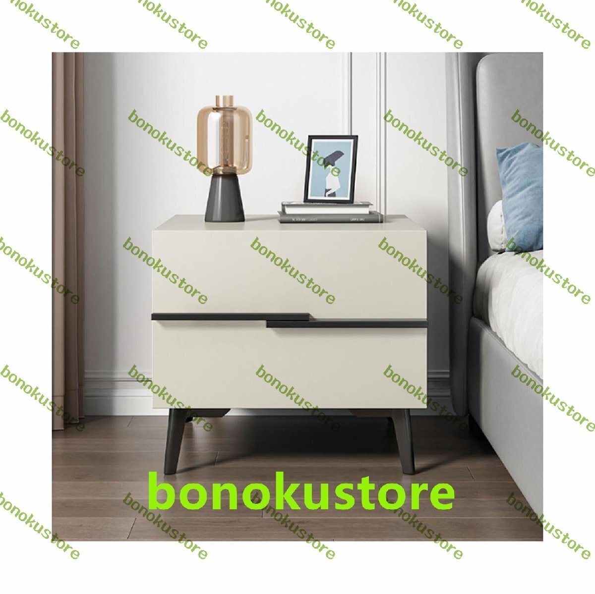 エレガントなベッドサイドテーブル ナイトスタンド 2個セット エンドテーブル 無垢材ベッドサイドテーブル 引き出し2個付き 北欧風ベッドサイドドレッセ 40/48cm モダンベッドサイドキャビネット サイドテーブル (A 48*41*44cm)