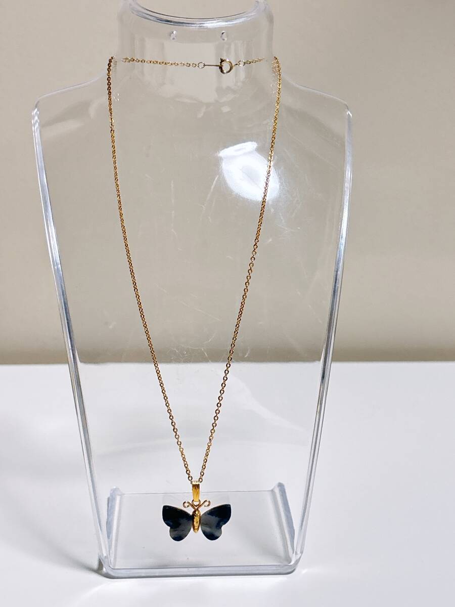 10-22 バタフライ 蝶 ネックレス ゴールド チェーン 天然石 アクセサリー