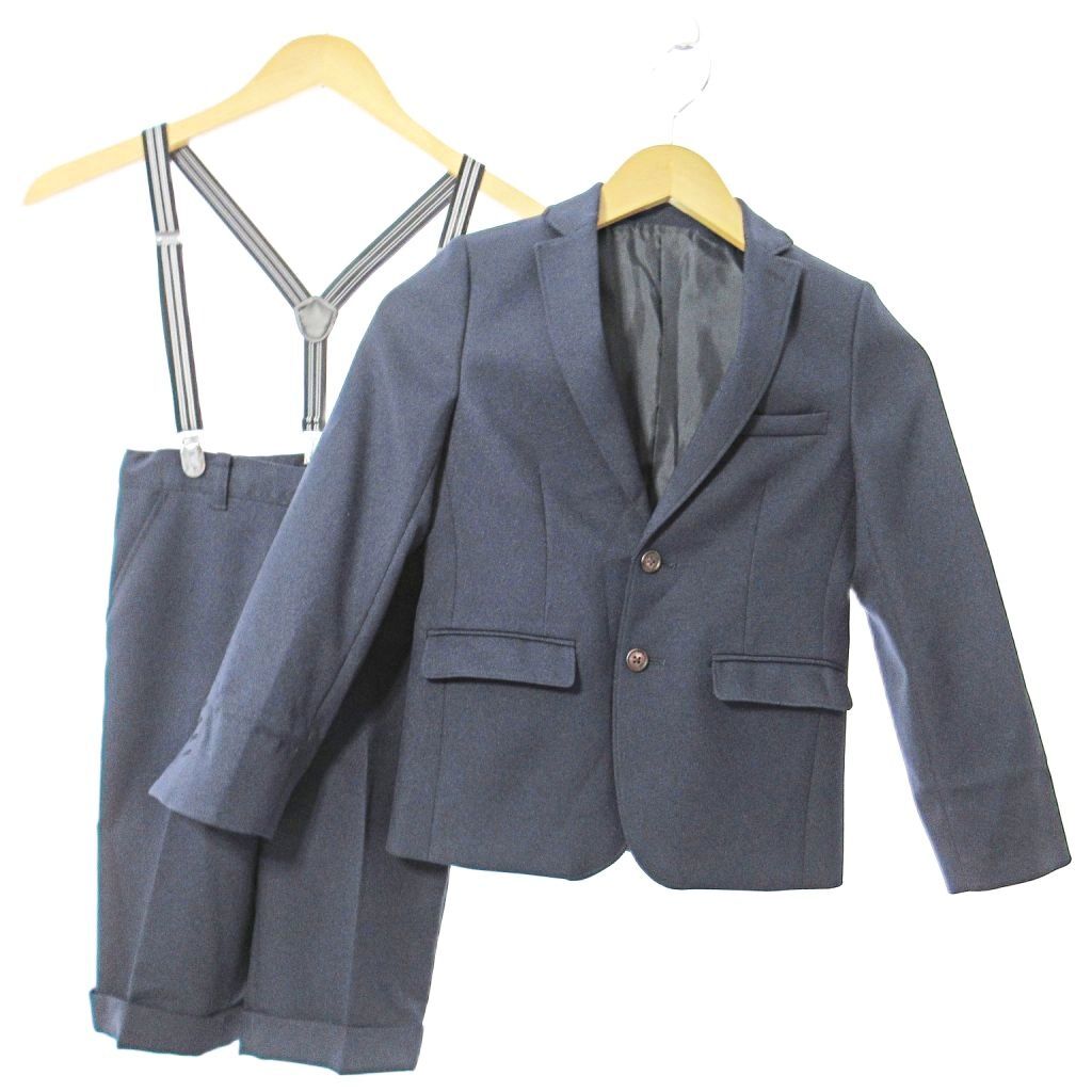 エルアンノワール ELLE EN NOIR 美品 キッズ セットアップ スーツ ジャケット パンツ サス付 フォーマル 130 紺 ネイビー 1007 キッズ
