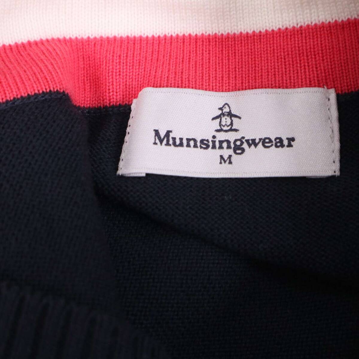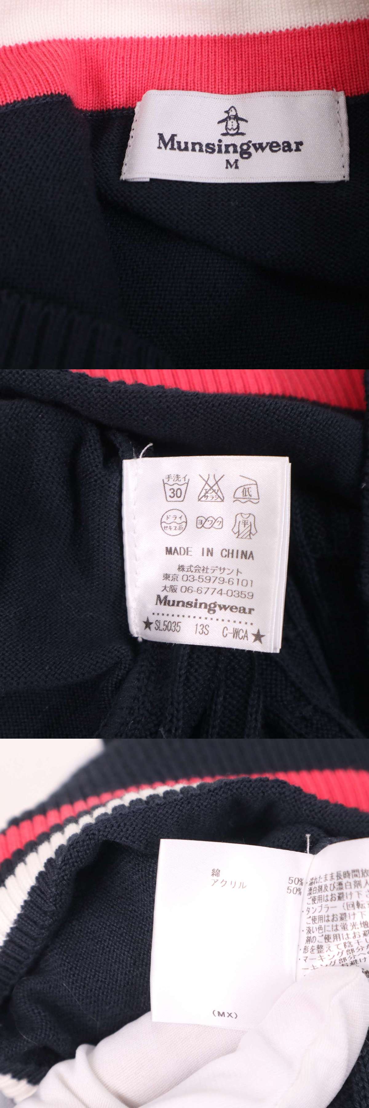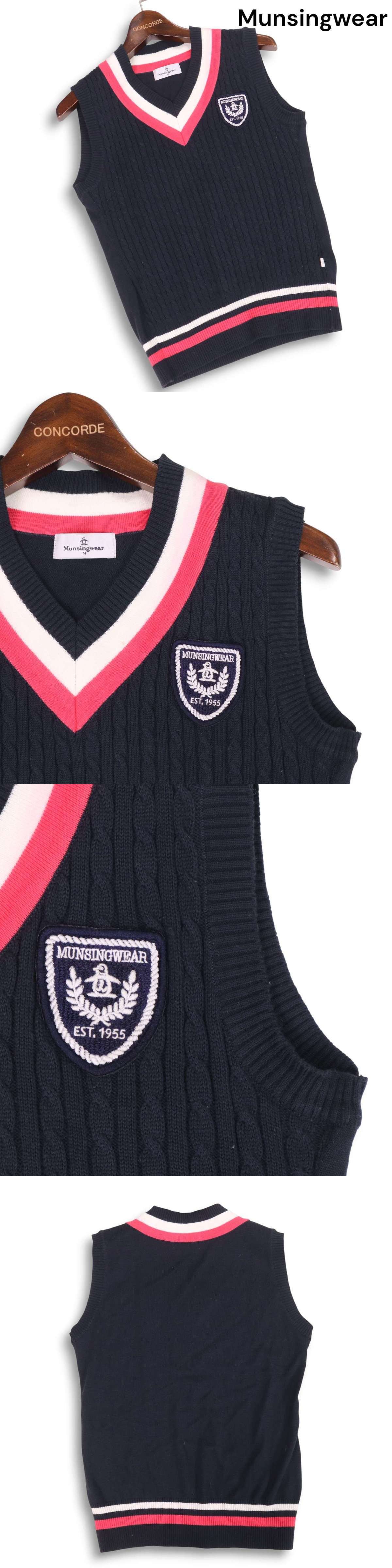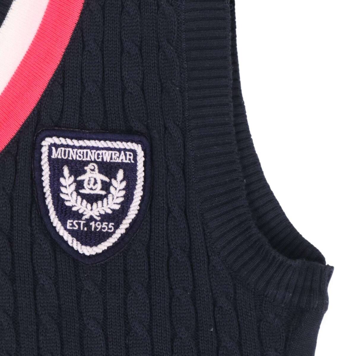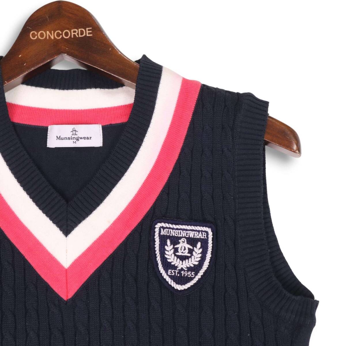 Munsingwear マンシングウェア ゴルフ 秋冬★ ケーブル編み Vネック チルデン ニット ベスト Sz.M レディース ネイビー