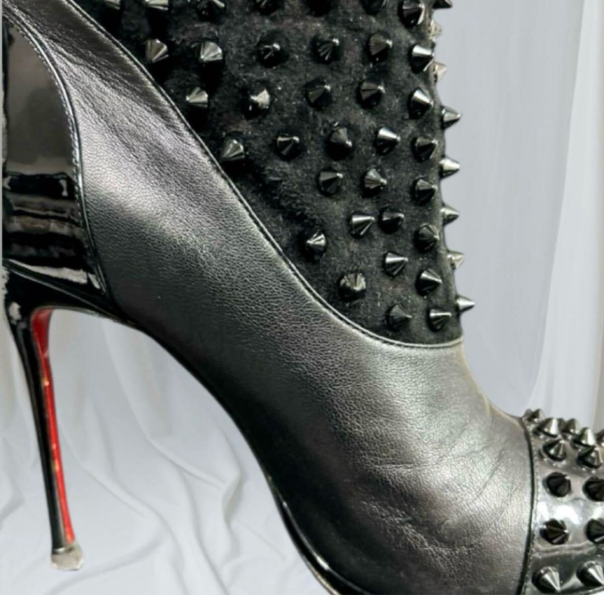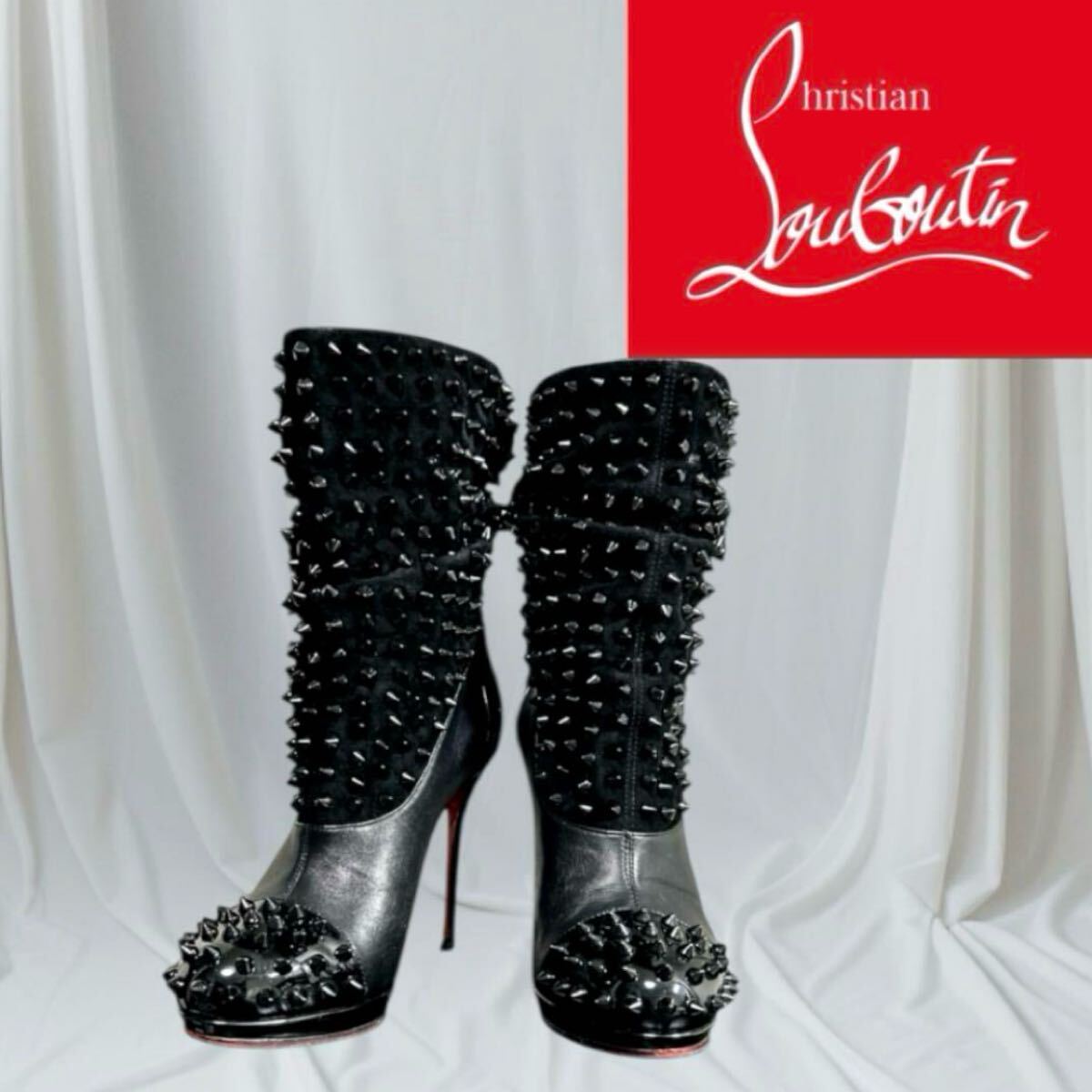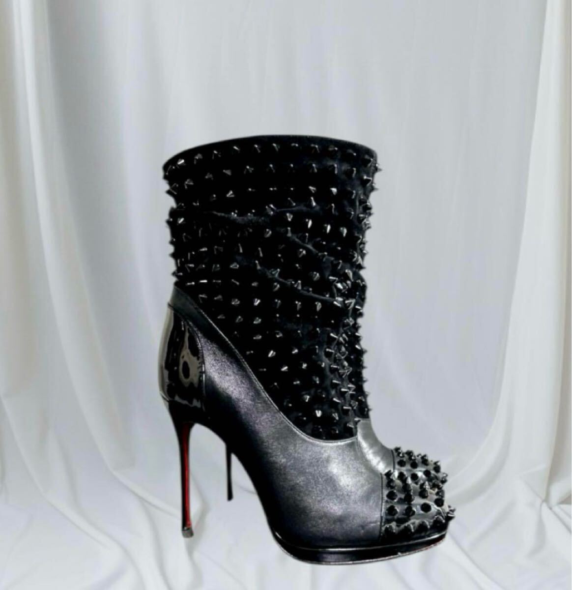 クリスチャン ルブタン スタッズ ショートブーツ レザー ブーツ ピンヒール