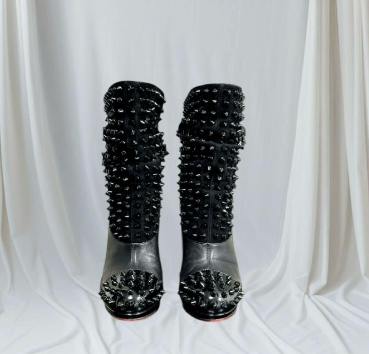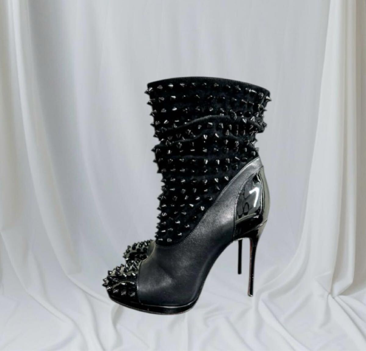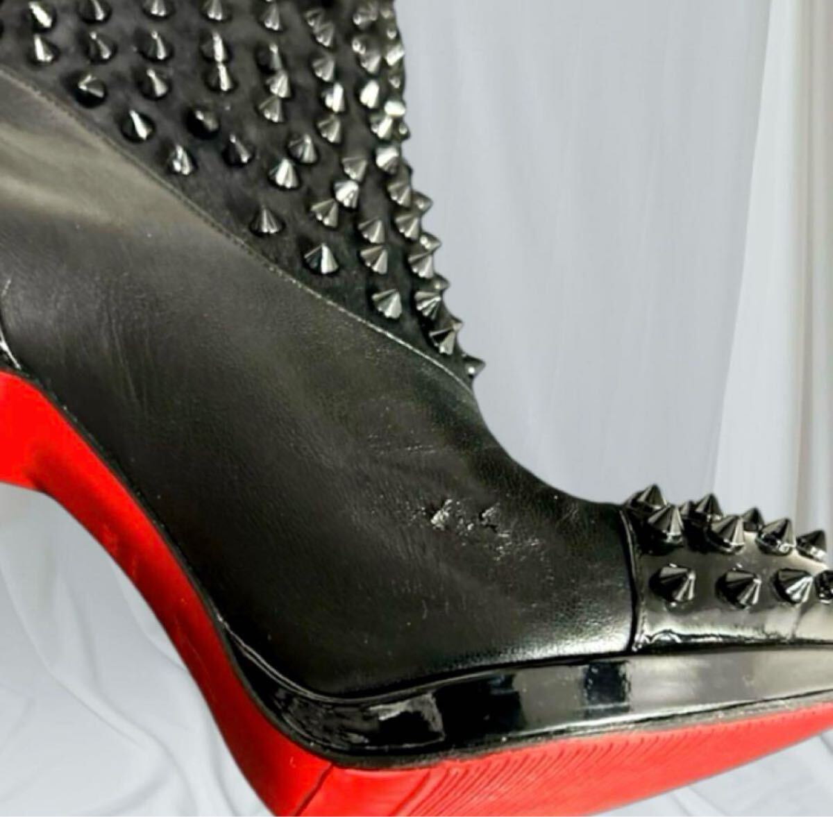クリスチャン ルブタン スタッズ ショートブーツ レザー ブーツ ピンヒール