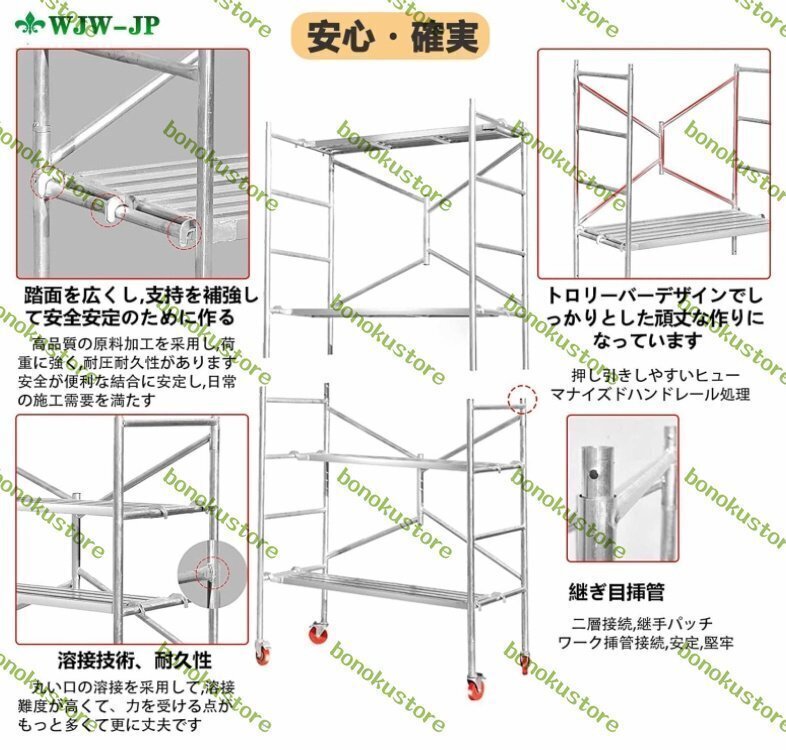 たくさんの展出品の中に弊店の製品をご覧頂き、ありがとうございます。商品の説明高所作業台/足場台/折りたたみ作業台、高所作業/消防/炭鉱の現場/塗装/荷揚げなど、多目的に使える実用的なツールです。商品の説明名称:足場台 踏み台、足場脚立、伸縮足場板材質:亜鉛メ