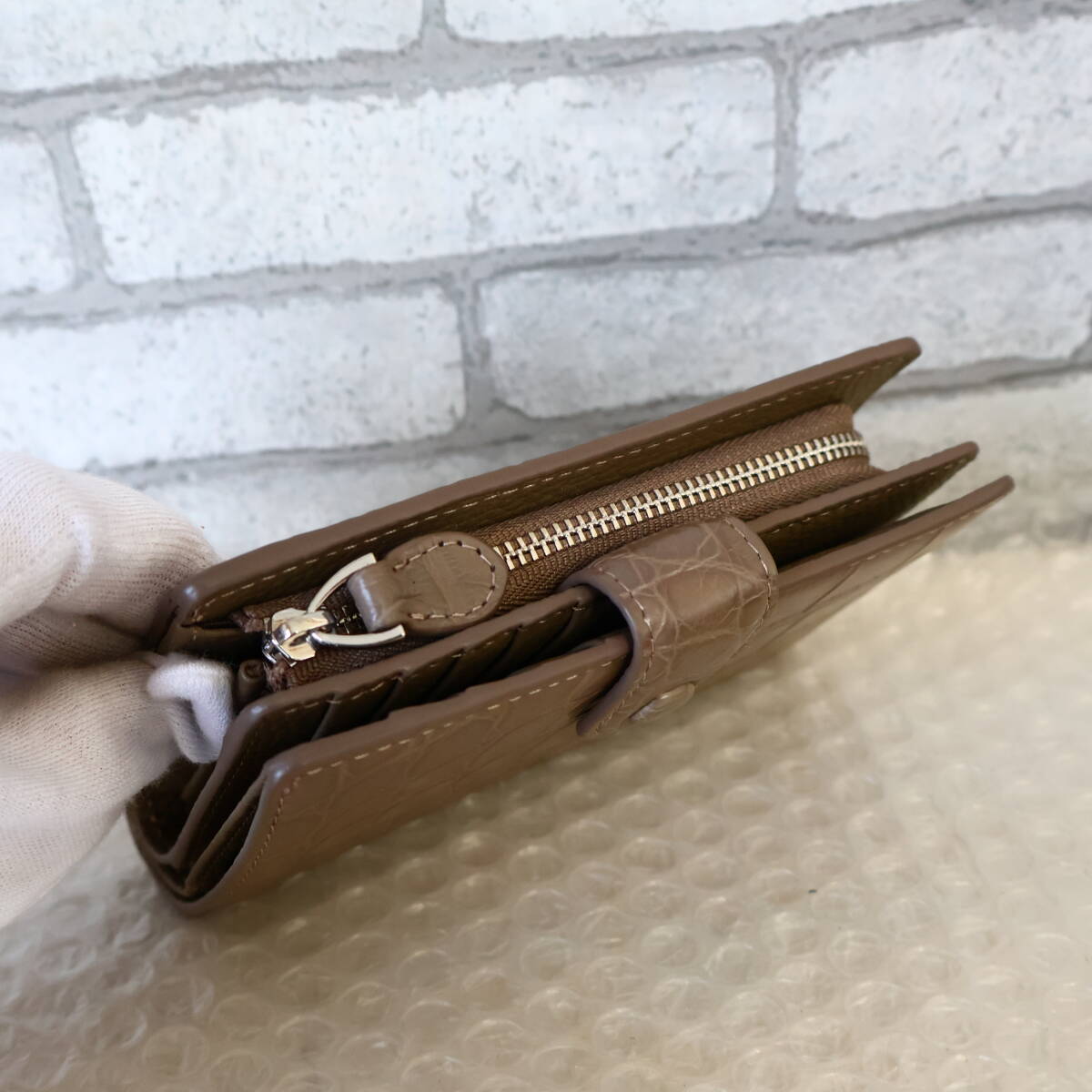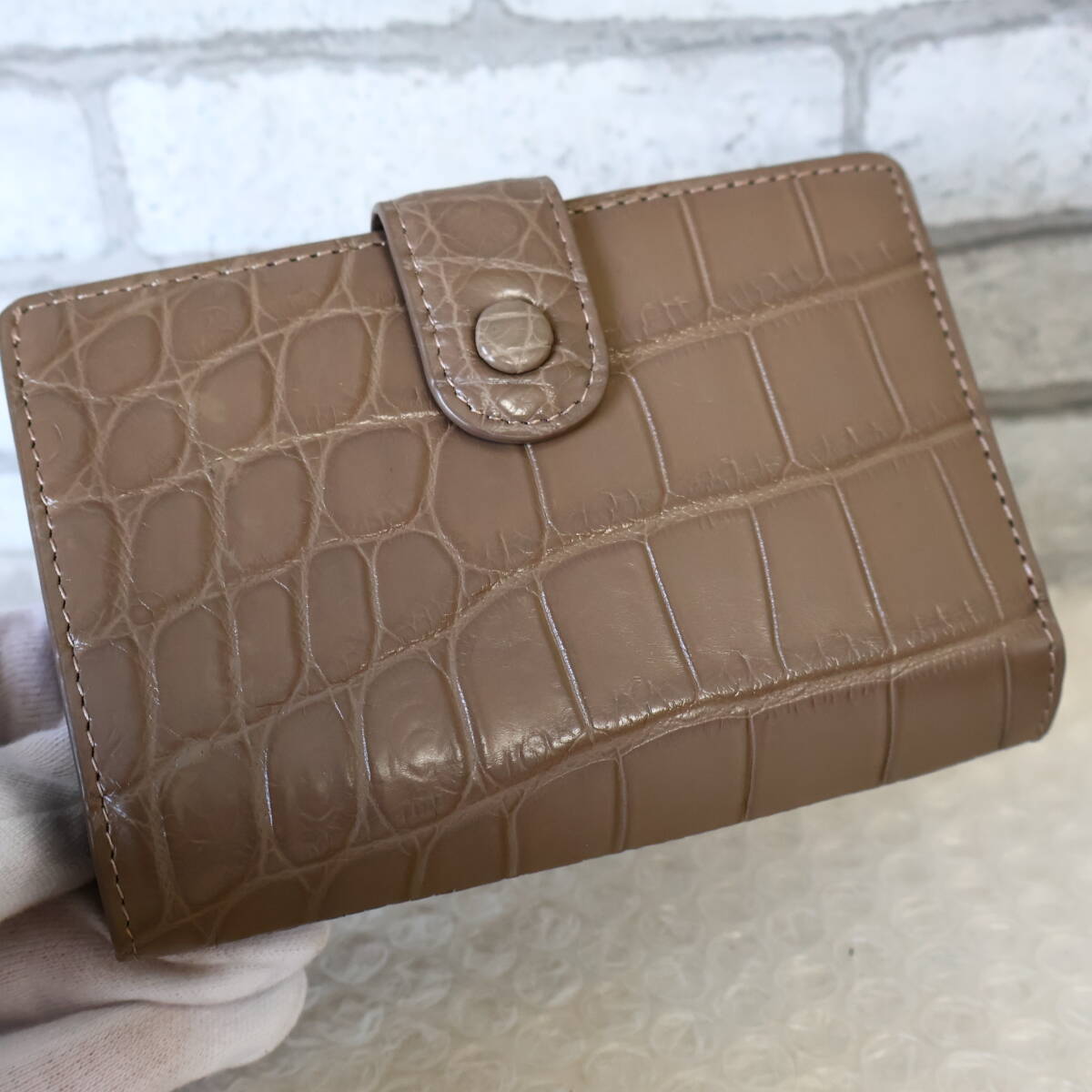 *極美品*マットクロコダイル*クロコダイル*リアルクロコ*レザー*二つ折り財布*財布*ウォレット*ミディアムウォレット*トープ*