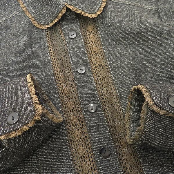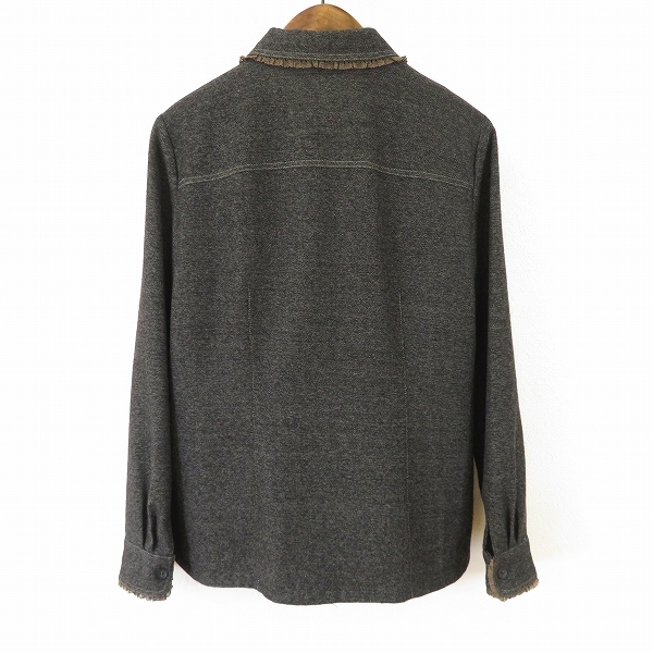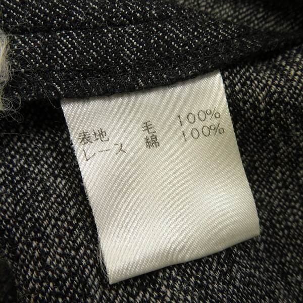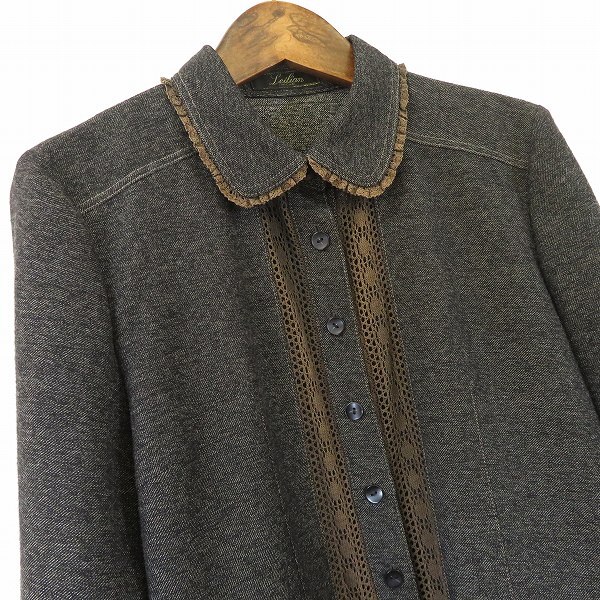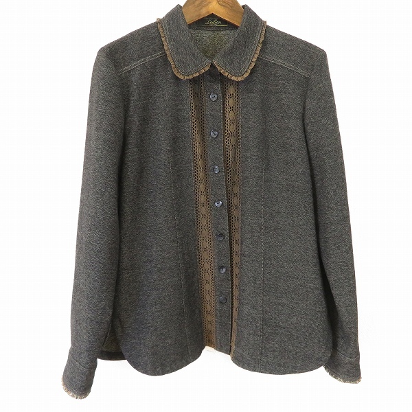 商品名 | #w レリアン Leilian シャツ ブラウス 7号 黒系 霜降り 厚手 ウール 丸襟 レース 長袖 日本製 レディース 926141 k01 |