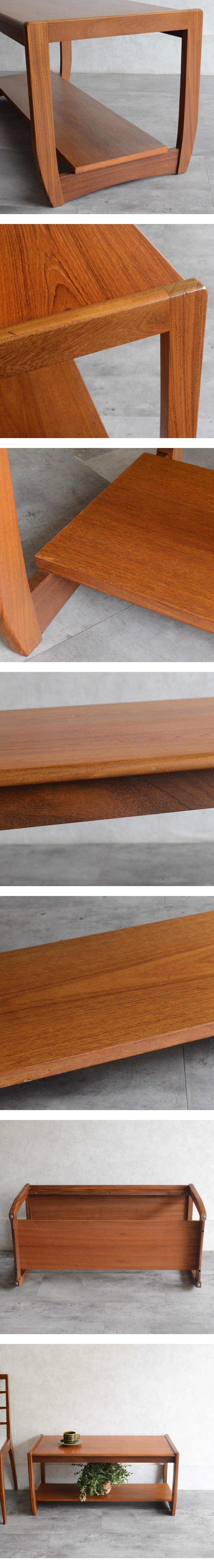 【メンテナンス済】イギリスヴィンテージ チーク ローテーブル コーヒーテーブル ミッドセンチュリー 北欧家具 センターテーブル 棚付き