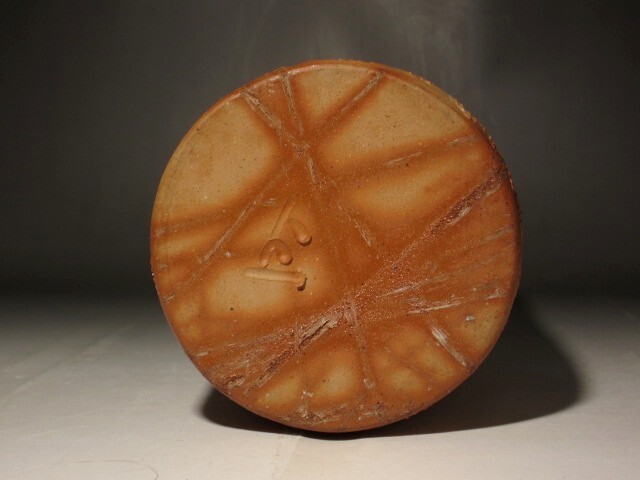 県重要無形文化財 松井興之作、 備前花入です。 素朴ながらも存在感のあるお品です。 底面に銘があります。