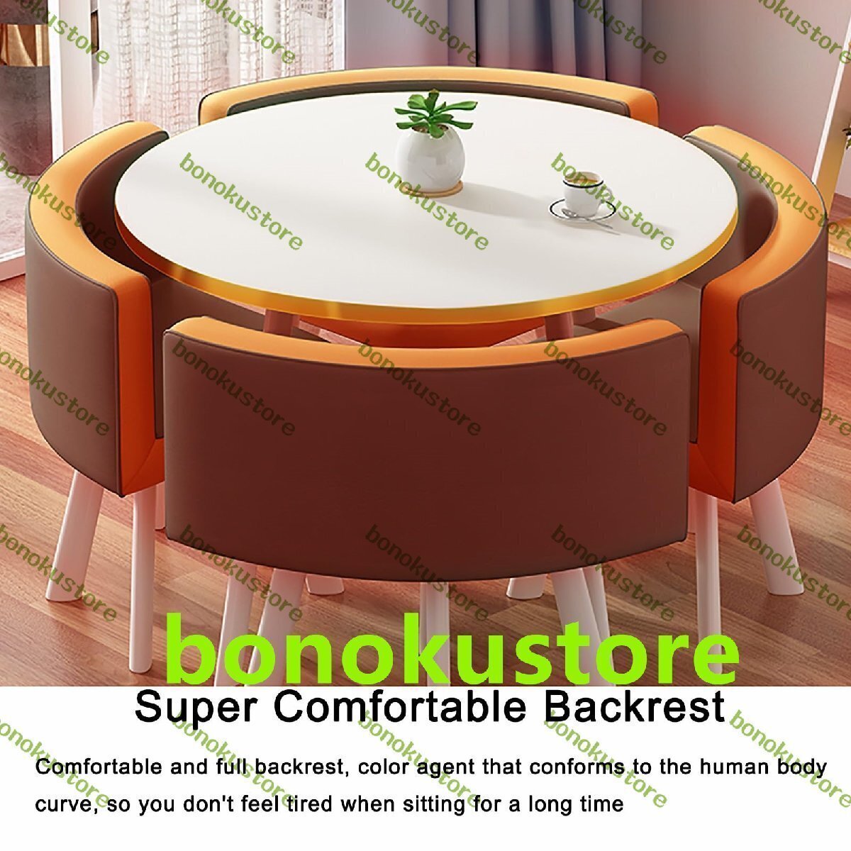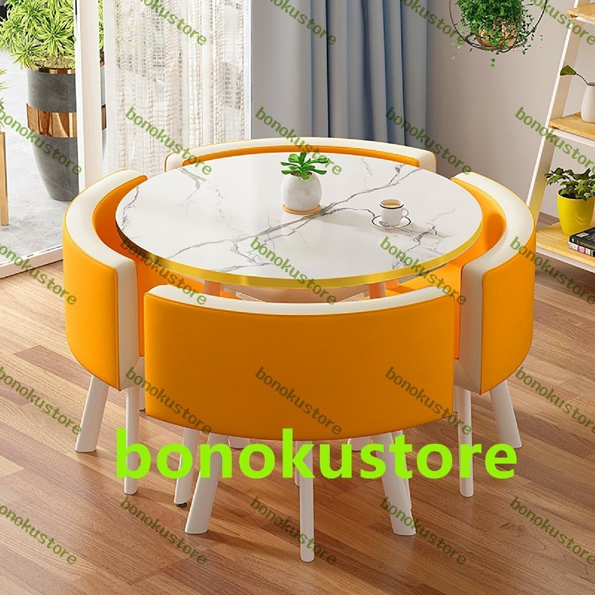 ダイニングテーブルセット、ダイニングテーブル ソファーセット、テーブルセット、ダイニングテーブルセット4人用、キッチン、応接室、テーブルと椅子のセット、シンプルな小さな丸テーブル、丸い会議テーブル、丸いモダンなダイニングテーブルセット用の4人用丸型ダイニングテーブルと椅子のセット(Orange)
