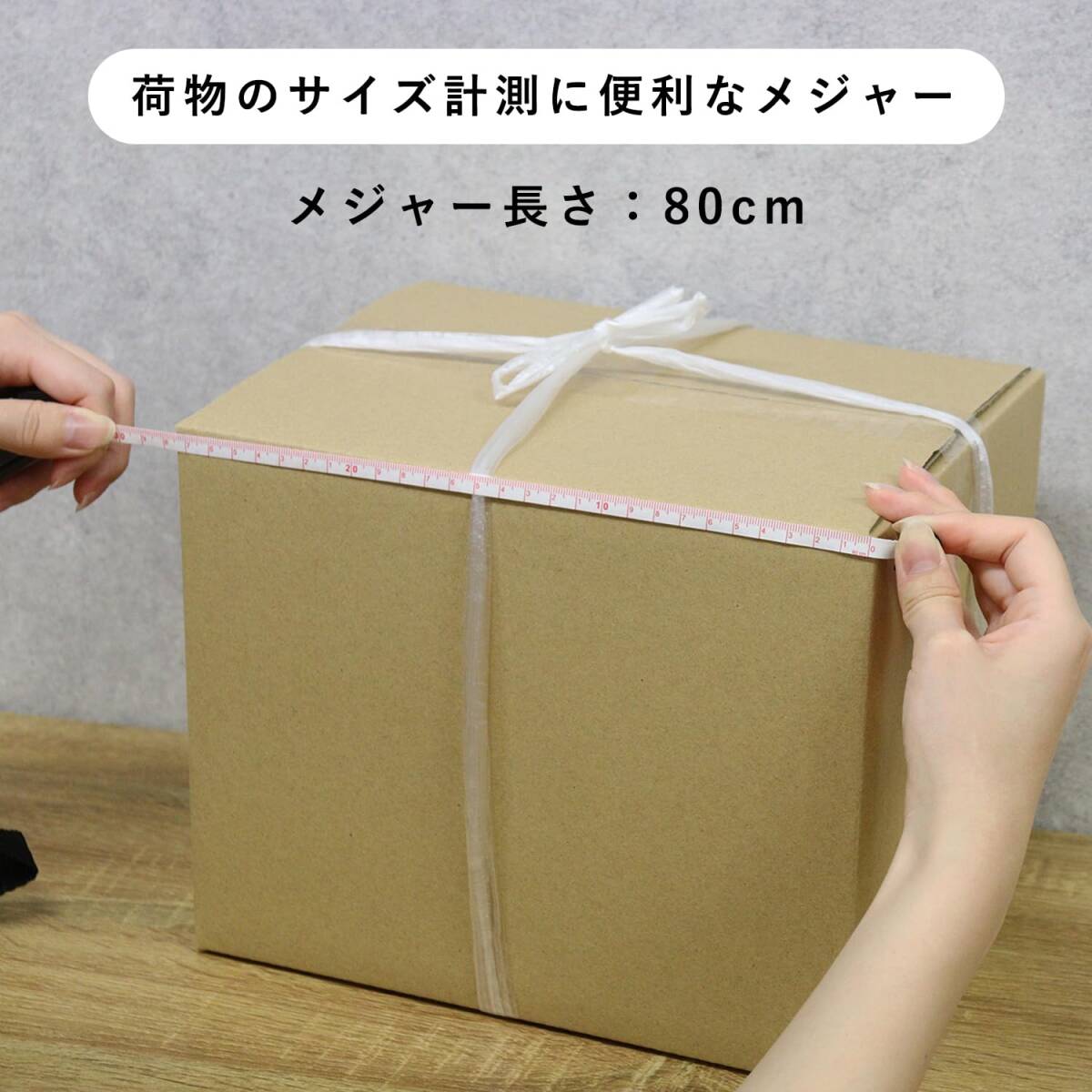 ・80cmのメジャーがついているので荷物サイズをはかる際に便利です。