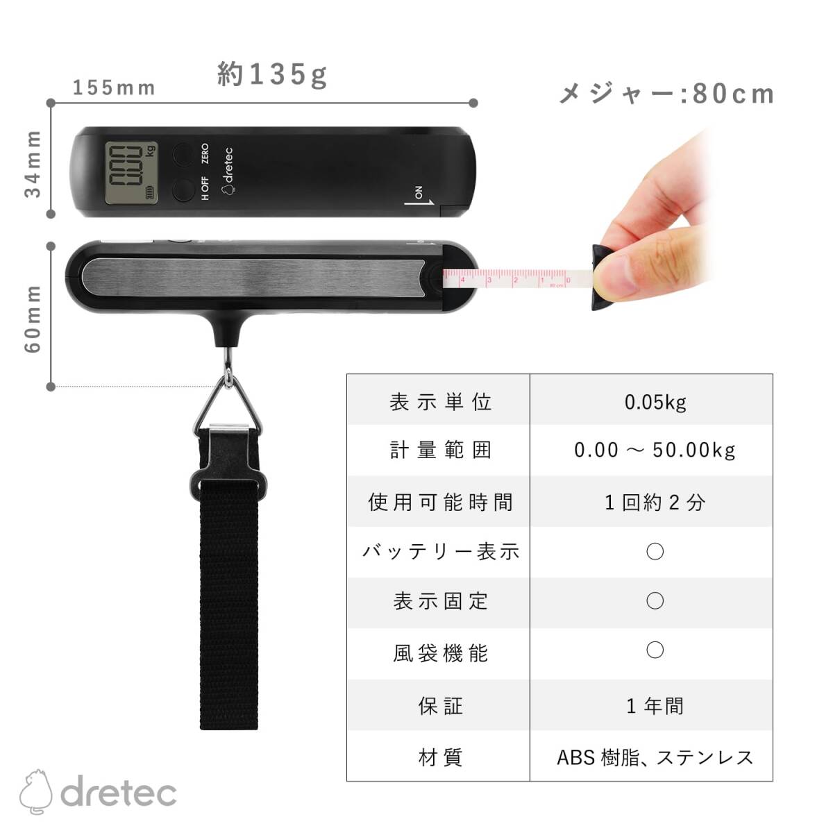 ドリテック(dretec) 【モヤさまEXPO 放映】 メジャー付きラゲッジスケール 発電タイプで電池不要 旅行はかり 荷物はかり 吊り下げ デ