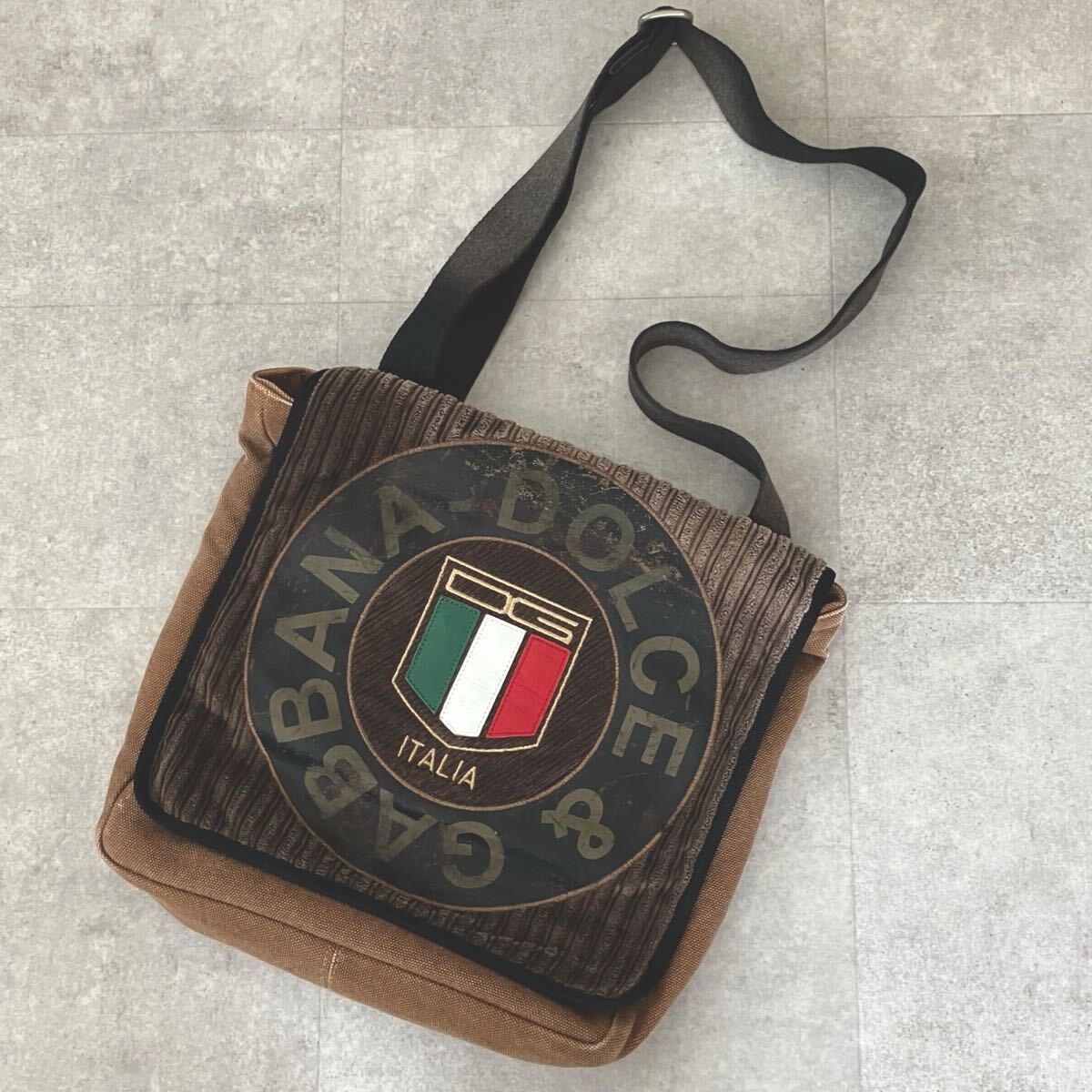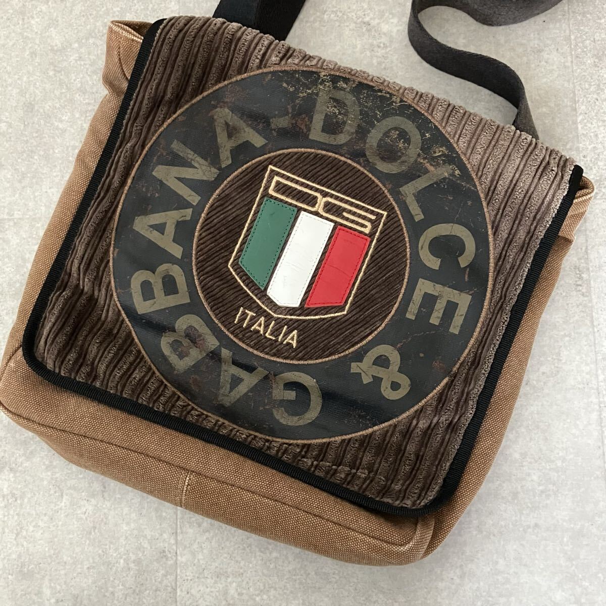 ●イタリア製 DOLCE&GABBANA ドルチェ&ガッバーナ ショルダーバッグ/キャンバス×コーデュロイ/メンズ/フロントロゴ