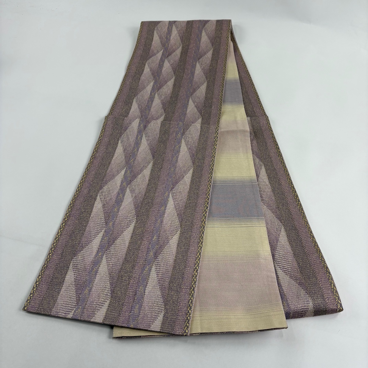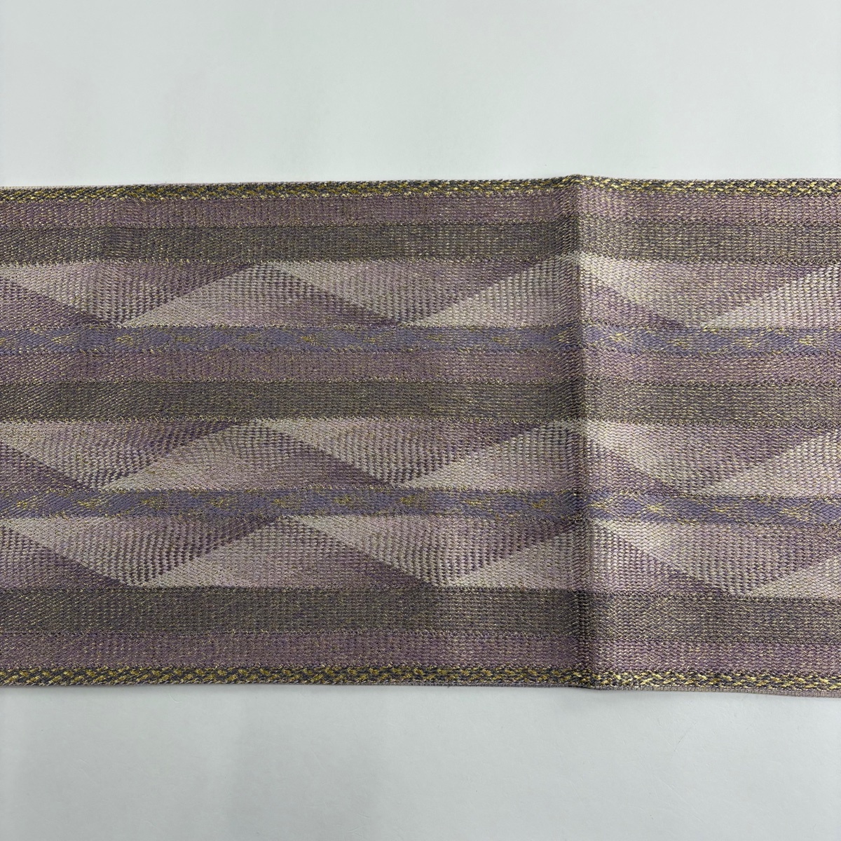| 袋帯 美品 秀品 縞 斜縞 金糸 薄紫 全通 正絹 【中古】 |