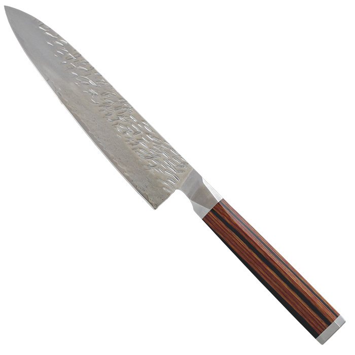 | SG2 63層 ステン割込 ペティ150mm 槌目ダマスカス 口金付 八角マホガニ柄 |