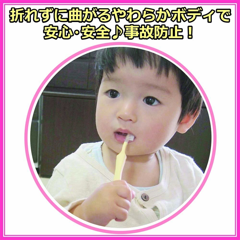 説明 ●やわらかボディの歯にやさしいベビー用の歯ブラシです。 ●歯ぐきにやさしく歯垢が落とせる適切な力(200g)で曲がります。 ●強い力が加わっても折れずに曲がるので安心。 ●やわらかボディなので噛んでも歯にやさしい。 ●すべりにくく持ちやすいグリップはいろいろな角度で磨きやすいから練習に最適。 ●ブラシがひろがりにくい長持ち設計です。 ●対象年齢・・・1~3才ごろ ●毛のかたさ・・・やわらかめ