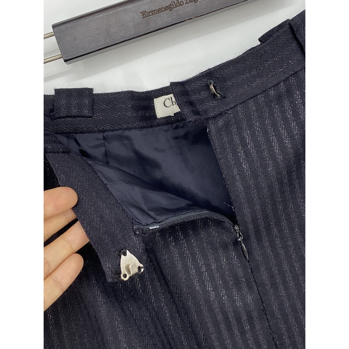 B0814/ビンテージ 90s Christian Dior クリスチャンディオール ウール ストライプ タイト ロング ミモレ丈 スカート L 黒 レディース