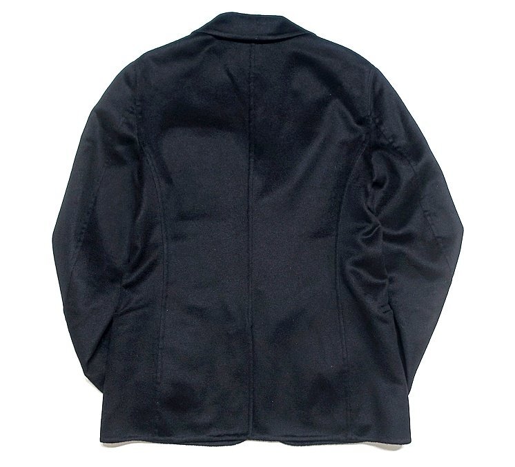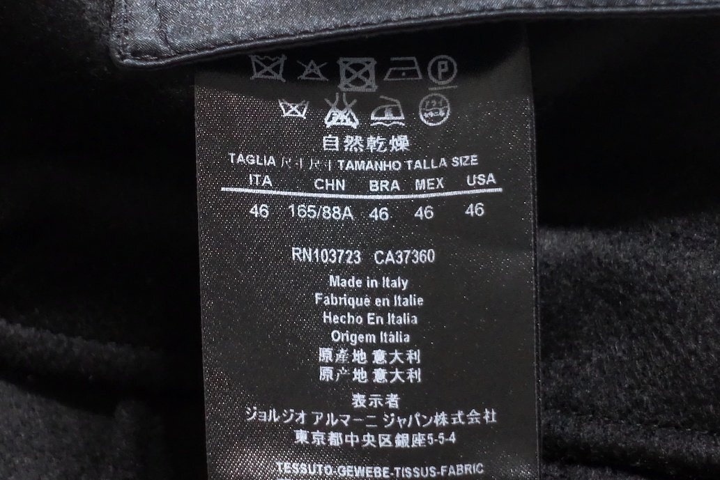 カシミヤ97% 新品同様 GIORGIO ARMANI ジョルジオアルマーニ 革ラベル カシミヤ フランネル テーラード ジャケット ブラック メンズ 46