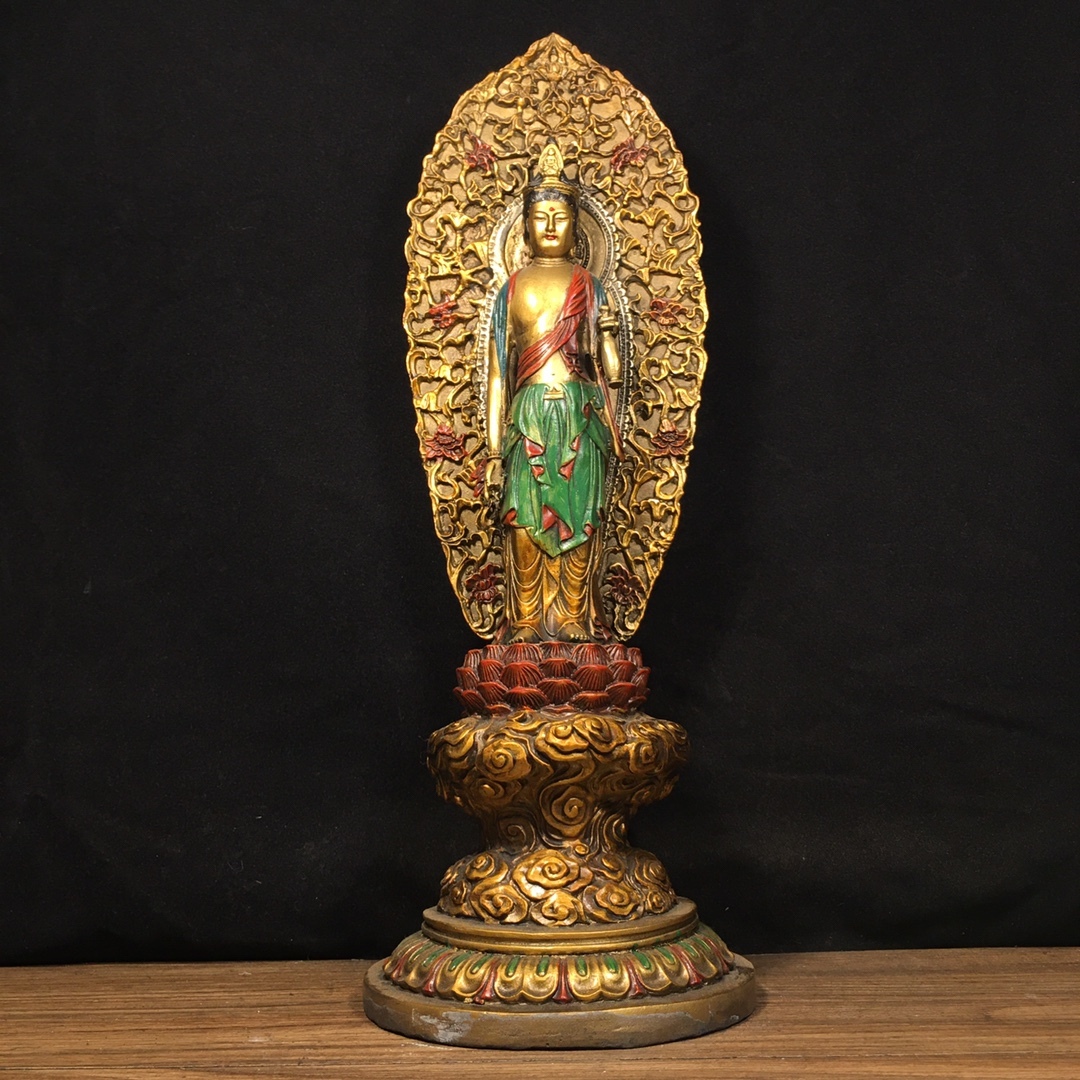 【超珍館蔵】銅製細作 彩繪 觀音像 仏像 宗教 置物 賞物 古賞物 古董品 古美術品 時代物 旧家蔵出 稀少珍蔵品
