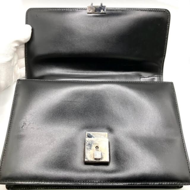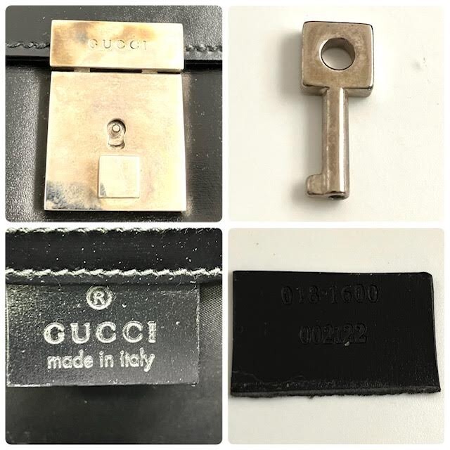 仙4 GUCCI 018.1600.002122 レザー セカンドバッグ クラッチバッグ ブラック シルバー金具 鍵 保存袋付き グッチ メンズ 黒