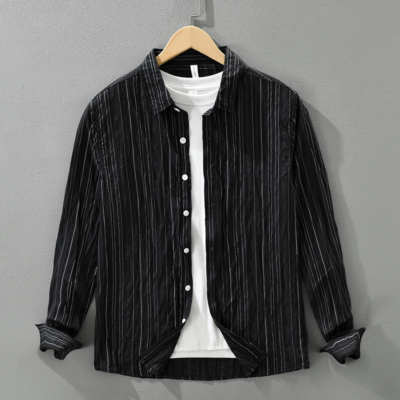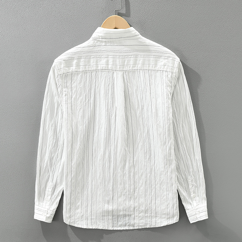 長袖シャツ シャツ 新品★メンズファッション 春夏服 トップス カジュアルシャツ ストライプ シンプル【M7837】白 3XL