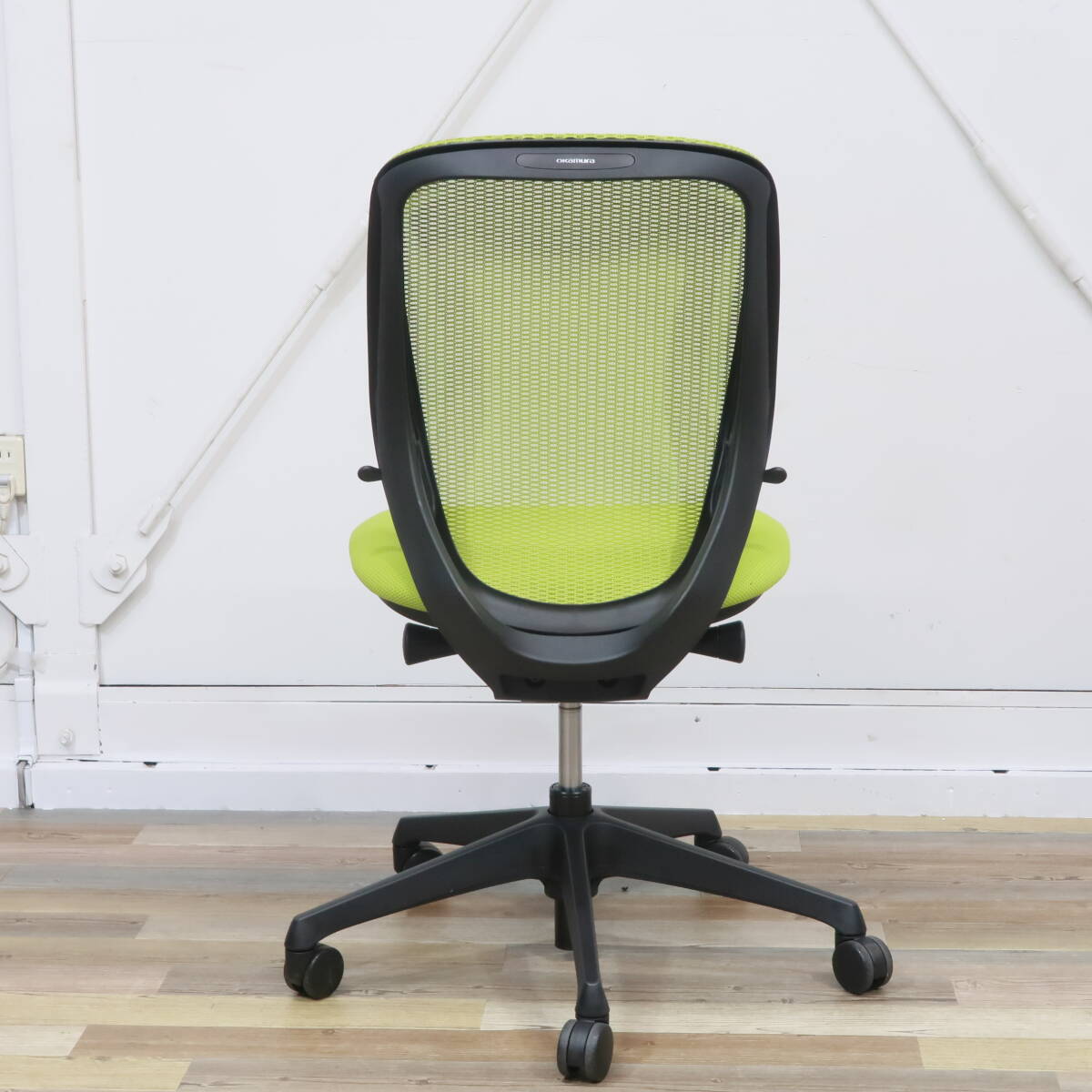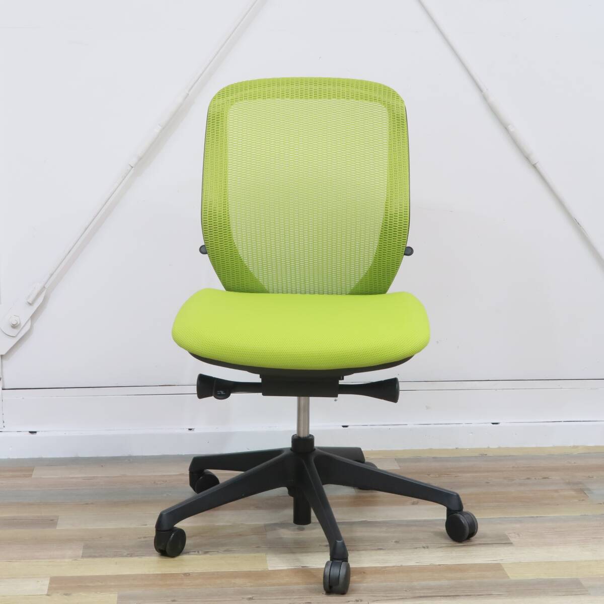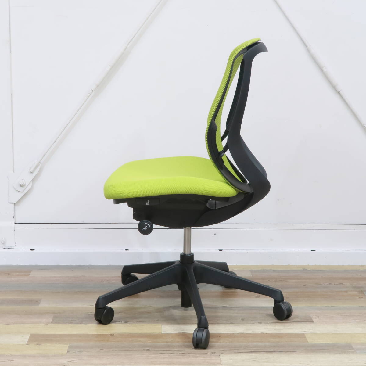 【中古・2018年製】オカムラ シルフィー ローバック 肘なし ライムグリーン 背メッシュ