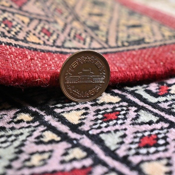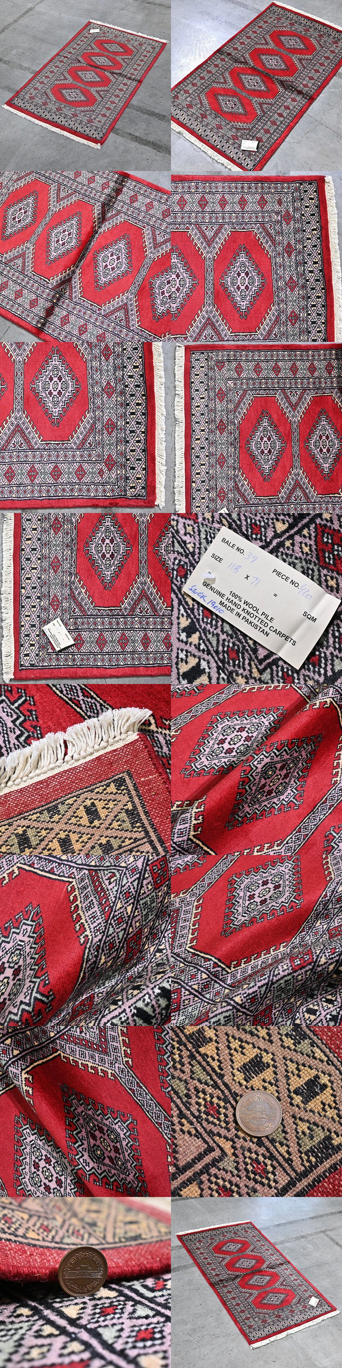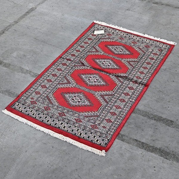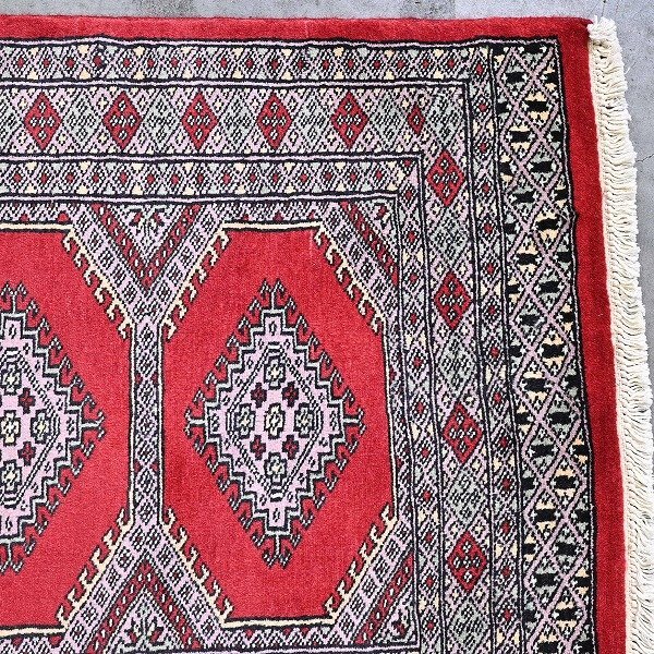 新品 未使用 パキスタン製 手織り ウール絨毯 ラグ ボハラ柄 ギュル文様 ハンドノット 羊毛 カーペット マット ホテル 応接室 P-113