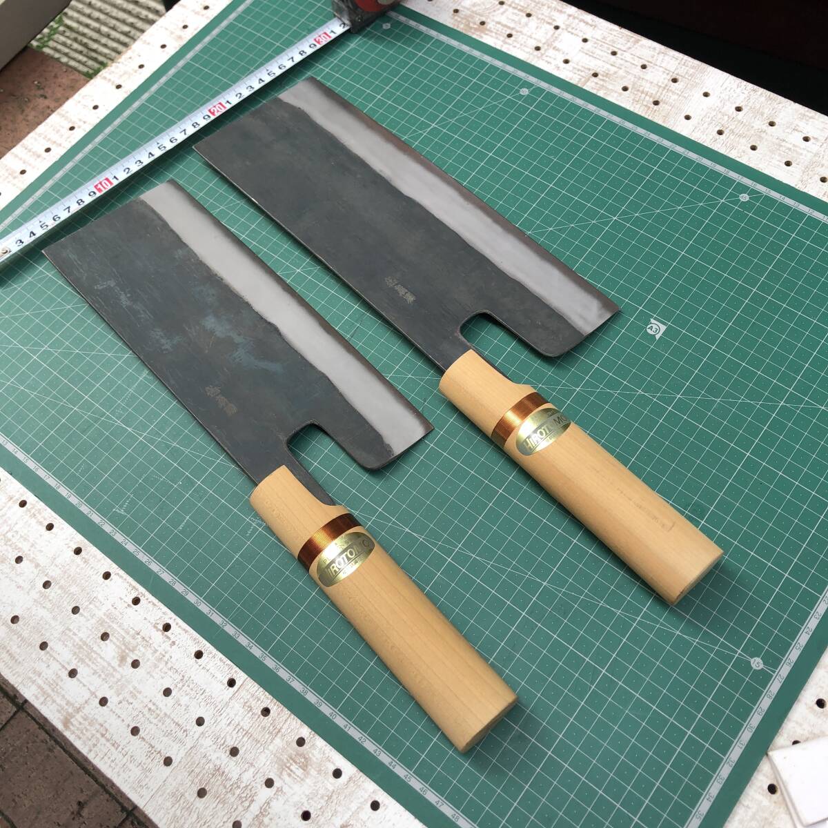 金物屋から 未使用品 まとめて 2本 極美品 ● 蕎麦切り包丁 HIROTOMO 極軟鉄鋼付 本職用 調理器具 料理包丁  1018