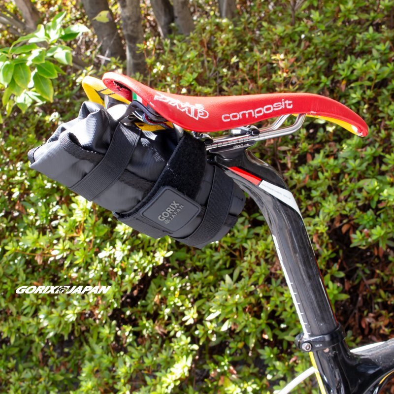 サドルバッグと違いくるくる巻く事で無駄なスペースを失くして効率の良い収納ができます。 中身の収納スペースも区分けされてあり、すぐにどこに何があるかを判別できます。 このサイズでパンク修理類やチューブなどを収納する事ができる。 生地も丈夫で柔軟性、耐久性と防水性があり屋外で使用するのに扱いやす素材となっています。 装着も簡単でサドルバッグとして、またフレームにも装着可能です。 ロードバイクやクロスバイク、MTB、ミニベロ、グラベルなど様々な自転車に! [コンパクトサイズ] くるくる折りたたむ事で容量は十分あるのにとてもコンパクトになるサドルバッグ。 サイクル走行に必要な携帯ポンプやパンク修理類はしっかりと収納できます。 外観は軽装に見えてスマートで良く見た目とは裏腹に容量は多い。 [素材] 屋外での使用に適している伸縮性のある生地で防水撥水機能を持ち合わせています。 サドルロール本体も軽量で柔軟で扱いやすい。 PU素材使用で丈夫で摩擦や破れに強く、耐久性に優れています。 (ファスナーは非防水のため、完全防水ではありません) [多収納] 3つのメインポケットには工具やパンク修理用具、チューブ、空気入れ、軍手、エネルギー食品などアイディア次第で様々な物を収納できる。 また小さいメッシュポケットにはパッチ類などそしてジップポケットには小銭などの収納に! がばっと広げれるので収納しやすく取り出しやすくなってとても使いやすい。 折りたたん後にストラップで固定するのでサドルロール中身が脱落する事はございません。 [取り付け簡単] ストラップをサドルレールやフレームに巻き付けベルクロで留めるだけで装着できます。 短時間で外す事ができるので着脱は面倒でなくスムーズに行えます。 サドルバッグだけでなくフレームに取付可能なのでフレームバッグとしても機能します。 きつく締付ける事で安定性もあり横揺れを防止。 商品内容サドルバッグ(サドルロール) 素材PU、ポリエステル サイズ折畳時:15x10.5cm / 展開時:33x29cm / センターベルト幅 3.7cm 重量112g |