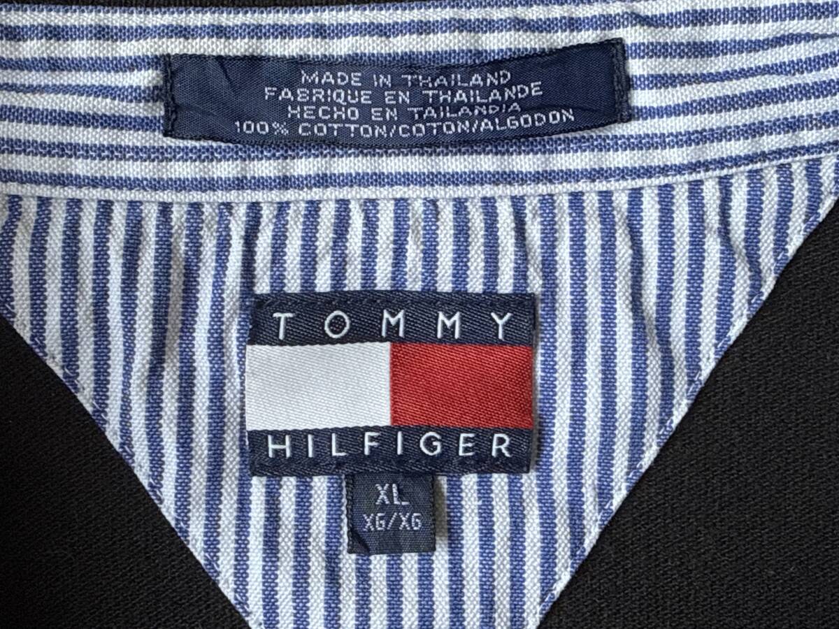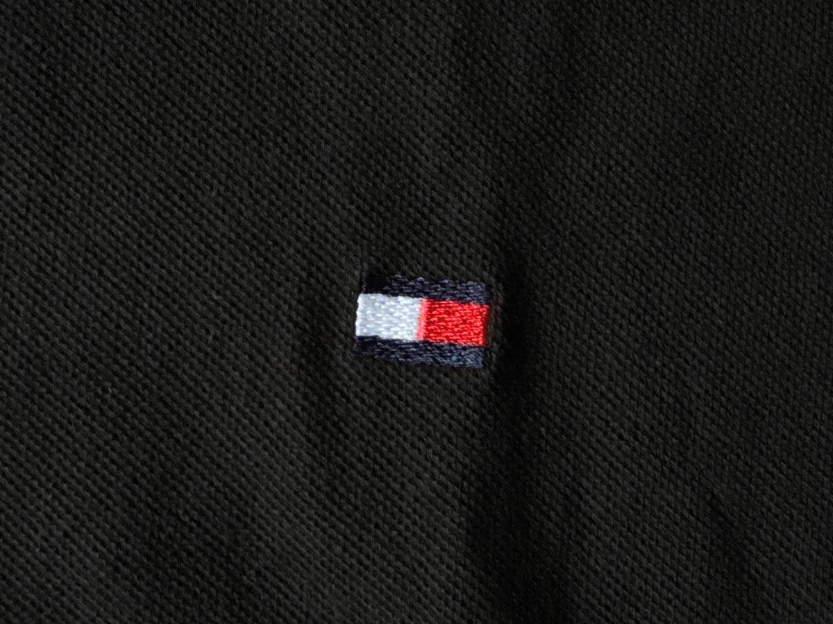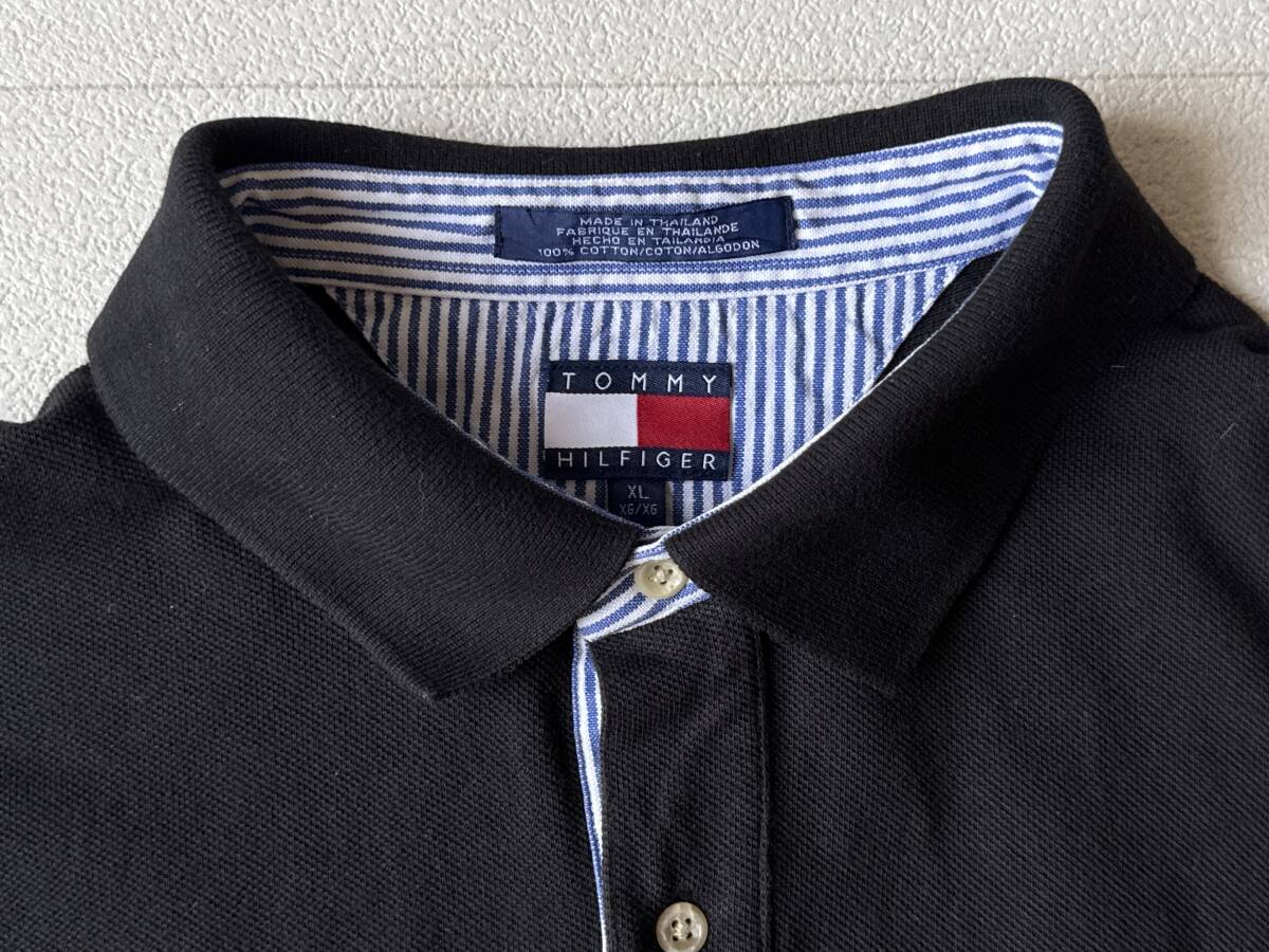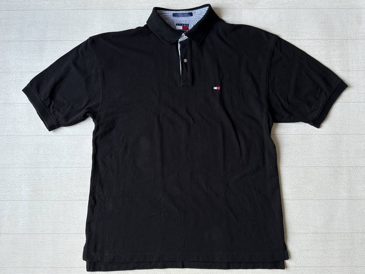 ☆送料無料☆ TOMMY HILFIGER トミーヒルフィガー USA直輸入 古着 半袖 フラッグタグ ロゴ ポロシャツ メンズ XL ブラック トップス 中古