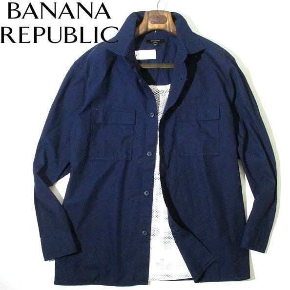 秋物▼ 定価12000円 新品 未使用 バナナリパブリック シャツジャケット 紺 ネイビー 長袖シャツ Lサイズ バナリパ BANANA REPUBLIC