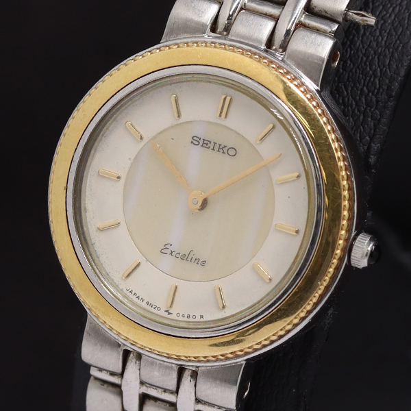 1円 稼働 セイコー エクセリーヌ 4N20-0330 QZ アイボリー文字盤 レディース腕時計 1927000 10NGB MST